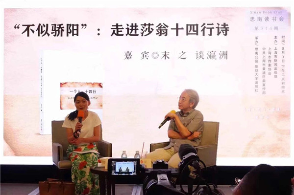 左為末之,右為談瀛洲 8月3日下午,復旦大學外文學院教授末之攜新書《一個人·十四行》來到思南讀書會第314期的現場,與復旦大學外文學院教授談瀛洲一起分享閱讀莎士比亞十四行詩的心得體悟,以莎翁詩學為一道棱鏡,引領讀者透過......