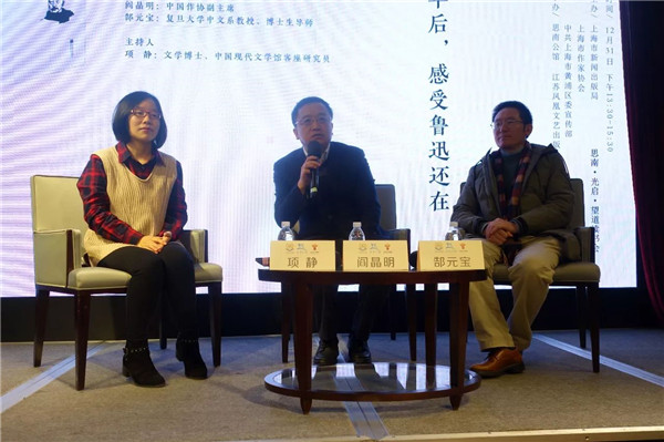 從左至右為項靜、閻晶明、郜元寶 12月31日,學者作家閻晶明帶著他的新著《魯迅還在》走進思南讀書會第221期的現場,對談評論家郜元寶,帶領讀者們以魯迅的日常生活為切入點,共同感受魯迅的偉大和不平凡。青年評論家項靜擔任本次......