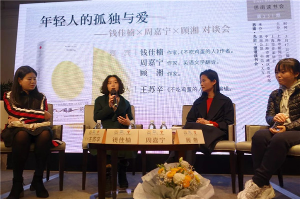 從左至右為王蘇辛、錢佳楠、周嘉寧、顧湘 3月17日下午,青年作家錢佳楠帶著她的第一部長(zhǎng)篇小說《不吃雞蛋的人》走進(jìn)第231期思南讀書會(huì),和青年作家周嘉寧和顧湘一起,暢談小說創(chuàng)作背后的快樂,以及當(dāng)下年輕人的生活。《不吃雞蛋......