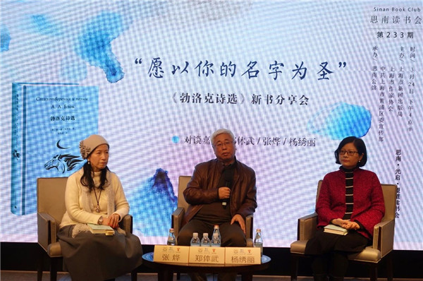 從左至右為張燁、鄭體武、楊繡麗 勃洛克(1880-1921)是俄國(guó)最后一位出身貴族的大藝術(shù)家,是享譽(yù)世界的抒情詩大師。3月24日下午,翻譯家、上海外國(guó)語大學(xué)教授鄭體武攜其歷經(jīng)三十年精心打磨翻譯的《勃洛克詩選》來到第233期思南讀書......