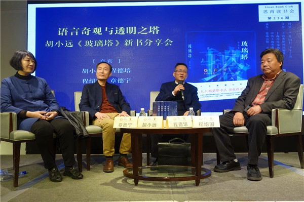 從左至右為章德寧、胡小遠(yuǎn)、程德培、程紹國(guó) 4月14 日下午,作家胡小遠(yuǎn)帶著他的新書《玻璃塔》來到第236期思南讀書會(huì),和評(píng)論家程德培、出版人章德寧、岳建一以及作家程紹國(guó)展開對(duì)談,討論《玻璃塔》的語言和結(jié)構(gòu)之美。 遙對(duì)的雙......