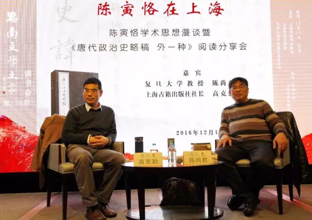 從左至右為高克勤、陳尚君 12月17日下午兩點,第156期思南讀書會以“陳寅恪在上海”為主題,復旦大學陳尚君教授、上海古籍出版社高克勤社長圍繞陳先生與上海的關系、陳寅恪在上海的學生、陳寅恪與上海古籍出版社的出版史進行對談......