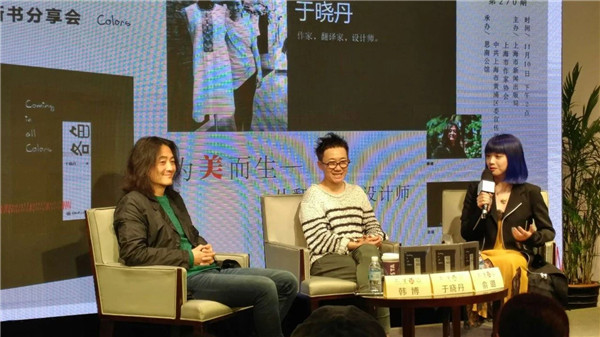 從左至右為韓博、于曉丹、俞璐 11月10日下午,兼具作家、翻譯家、獨立設計師多重身份的于曉丹攜其新書《各色》作客思南讀書會,和詩人韓博以及樂隊主唱俞璐一起從時尚領域出發思考美學意義。 用服裝設計來翻譯 于曉丹的名字最開......