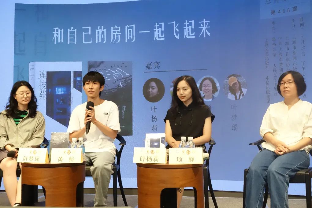 7月27日下午2時,周宏翔、黃昶、龔萬瑩、葉楊莉四位青年作家攜各自新作做客“思南讀書會青年作家2024春夏專場”,與青年評論家、編輯一起暢談寫作的經歷與心得。活動分上下半場進行。 和自己的房間一起飛起來 從左至右為葉夢瑤、......