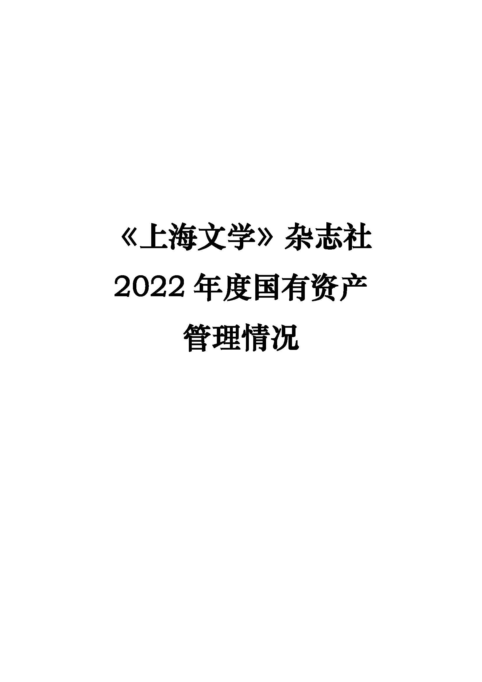 《上海文學(xué)》雜志社2022年度國有資產(chǎn)管理情況