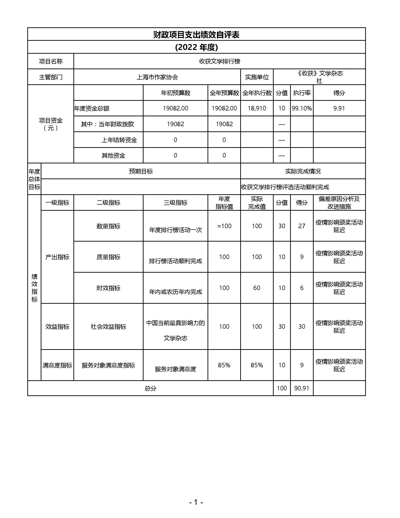 《收獲》文學(xué)雜志社2022年度項目績效自評價表