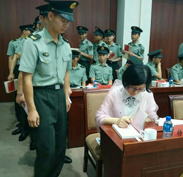 6月15日,為配合“學習踐行強軍目標、做新一代革命軍人”主題教育活動,開展“新一代革命軍人樣子”大討論,由解放軍出版社出版的長篇報告文學《永不褪色:南京路上好八連紀實》(楊繡麗著)首發暨贈書儀式在北京舉行。中央軍委原副主席、國防部原部長遲浩田上將為本書題詞并作序。中國作家協會副主席、書記處書記、中國報告文學學會會長何建明出席會議并講話。全國雙擁辦、總政宣傳部、國防大學、軍事科學院等單位領導、專家和基層部隊官兵近百人出席了活動。上海作協副書記馬文運也赴京出席了本次活動。