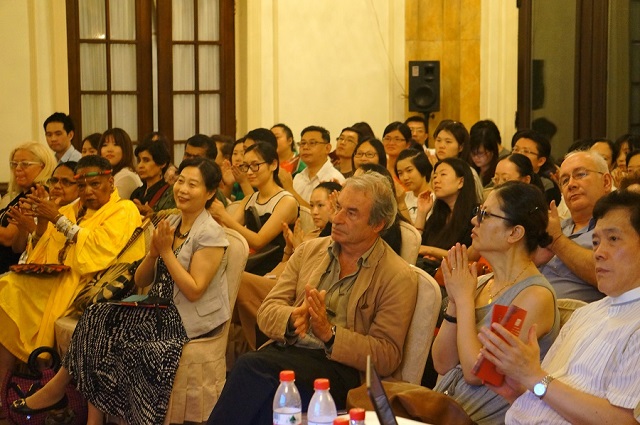 在9月2日舉行的歡迎儀式上,作家們本人傾情朗讀:無論是陳丹燕的《成為和平飯店》、路內的《少年巴比倫》、還是法國作家奧利維埃·羅蘭的《紙老虎》和印度作家卡費瑞·南比山的《和我們一樣的小鎮》,大家都感受到了文字的魅力。同樣精彩的還有來自坦桑尼亞的Mama C自彈自唱的非洲傳統弦類樂器“里拉提提”表演,以及上海音像資料館張景岳為駐市作家們講解和播放的珍貴視頻資料《上海的聲音》。