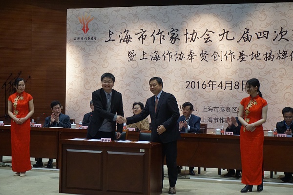 4月8日上午,上海市作家協會第九屆理事會第四次會議暨“上海作家協會奉賢創作基地”揭牌儀式在奉賢舉行。