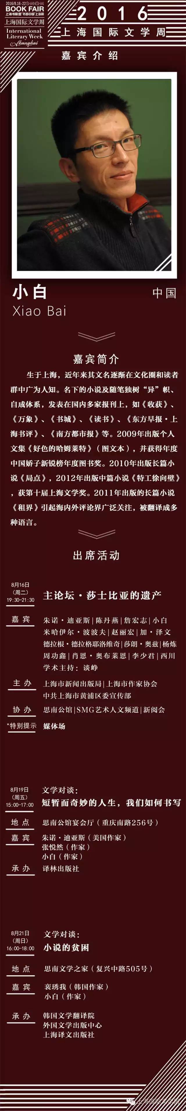 【人物】2016上海國際文學周嘉賓名錄之小白
