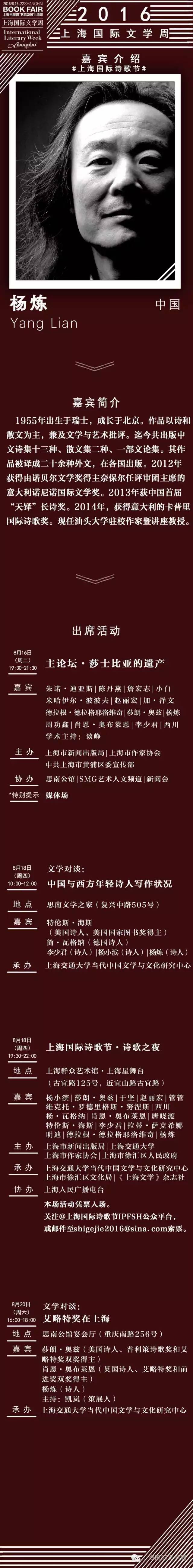 【人物】2016上海國際文學周嘉賓名錄之楊煉