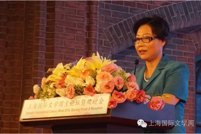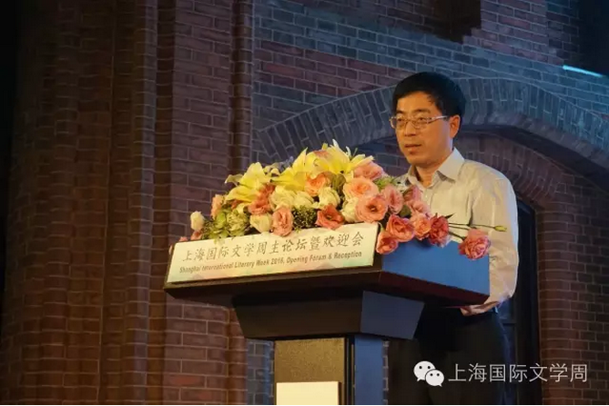 上海市黃浦區區委副書記張浩亮致辭:“相信今年的國際文學周在各位文學大師交流中,會激發出更多的思想火花和創作靈感,我們期待火花和靈感變成一束一束智慧之光,留下不可磨滅的印記。”