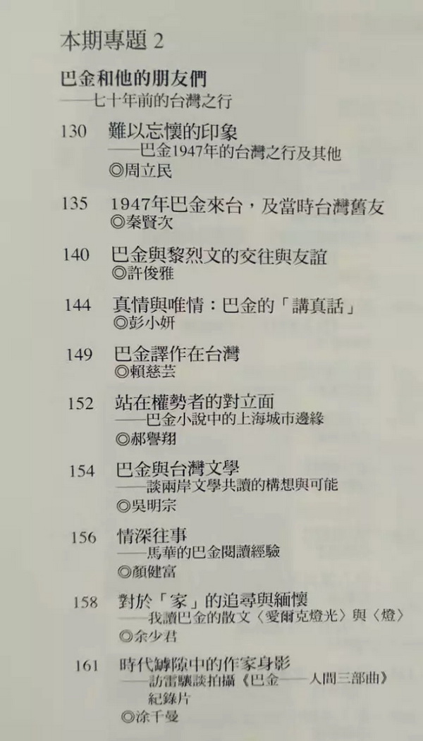 《文訊》雜志還為本次展覽組織專家學者撰寫多篇巴金研究的相關論文,在該刊今年的六月號上刊出了周立民、秦賢次、彭小妍、郝譽翔等人八篇文章,多角度解讀巴金與臺灣的關系。