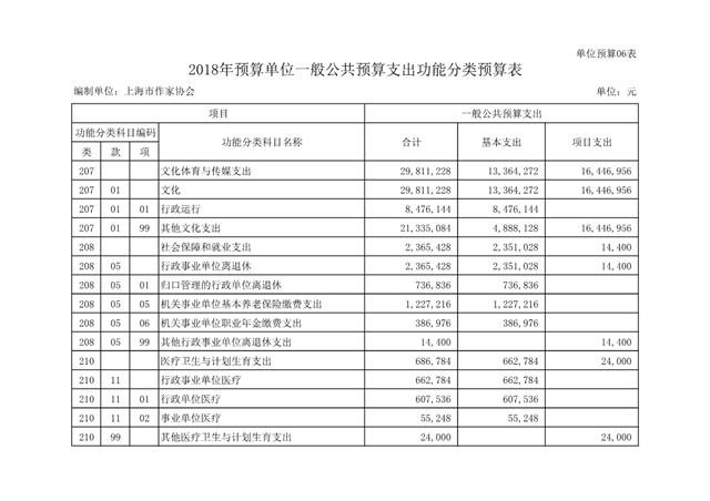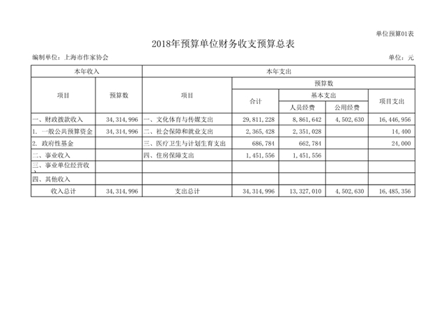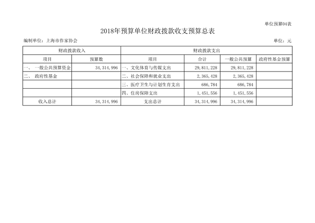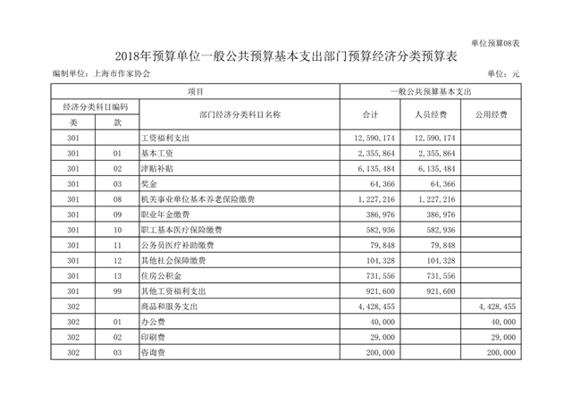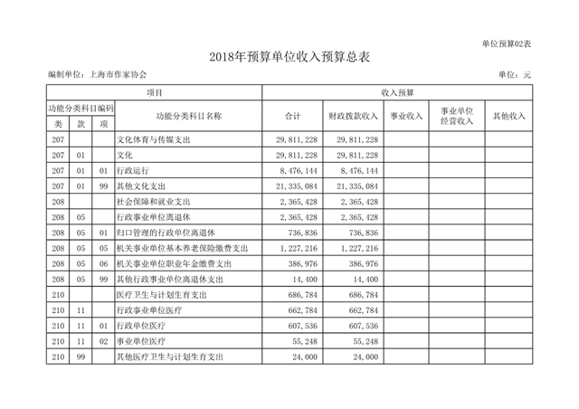 上海市作家協會2018年度部門預算(本級)