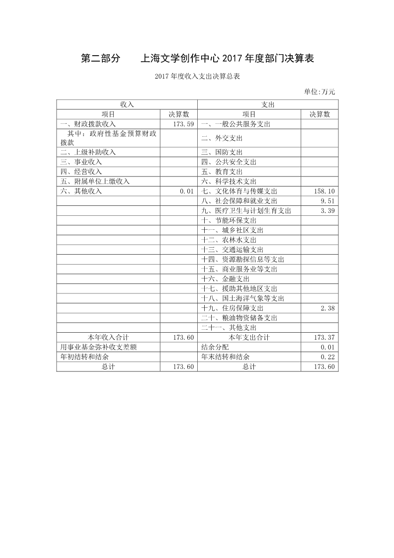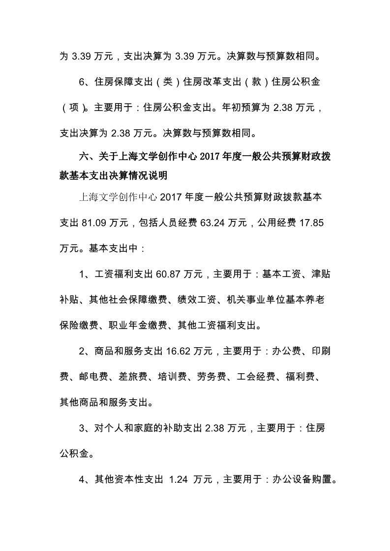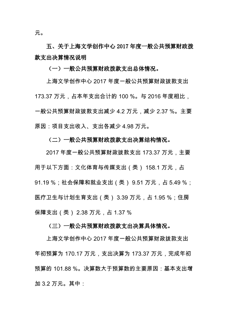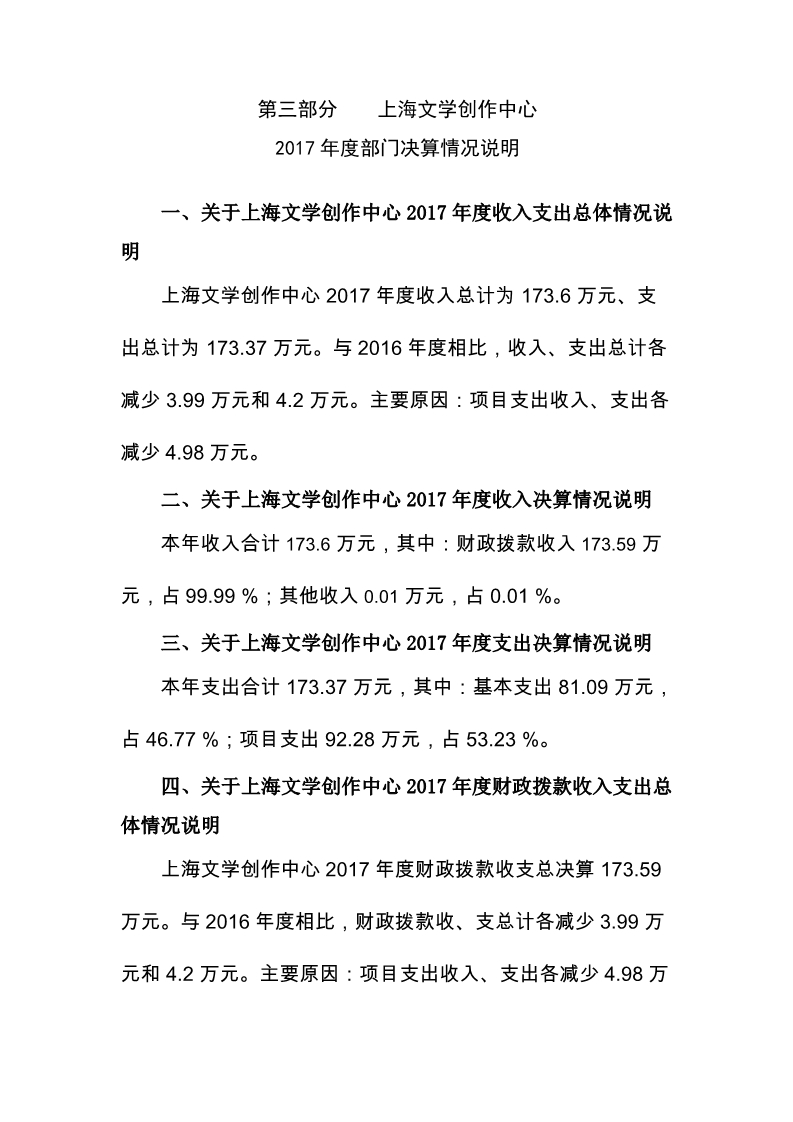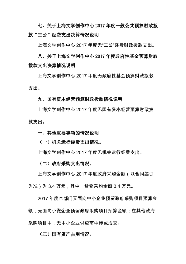 上海文學(xué)創(chuàng)作中心2017年度部門決算