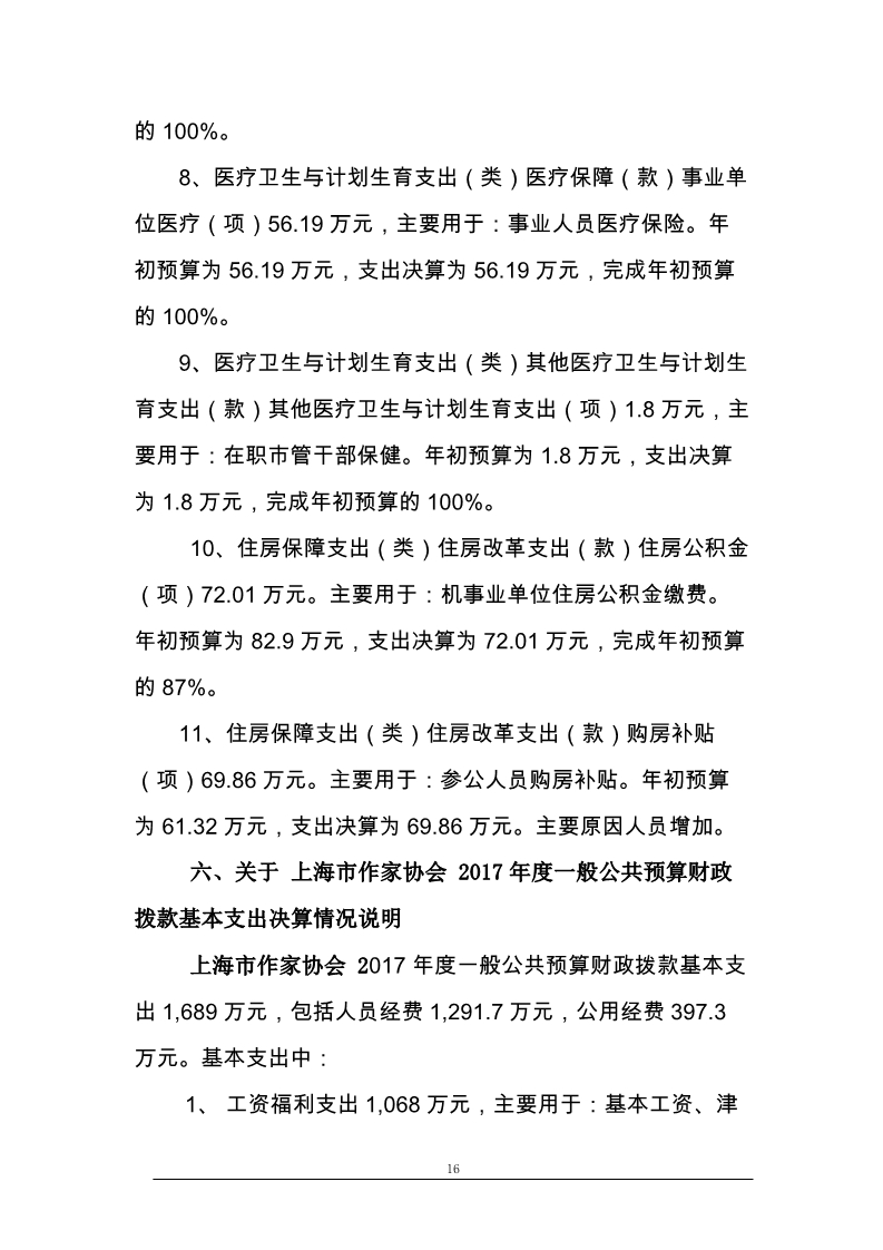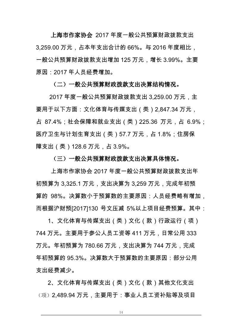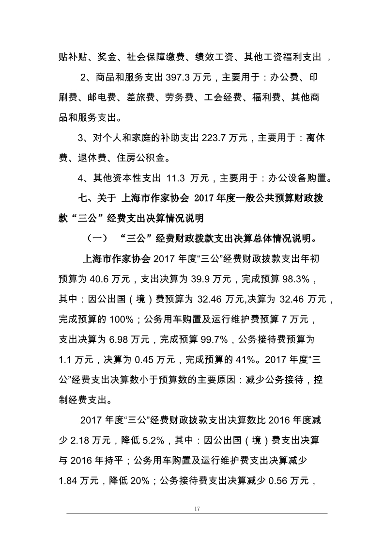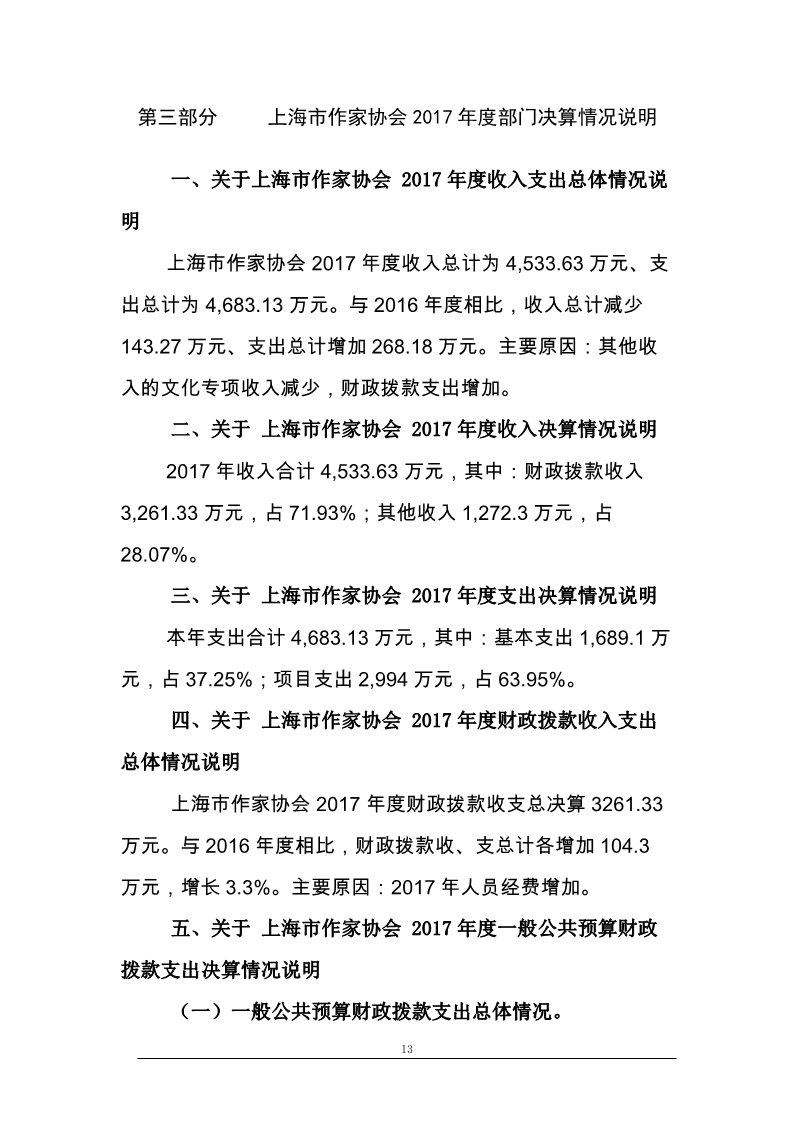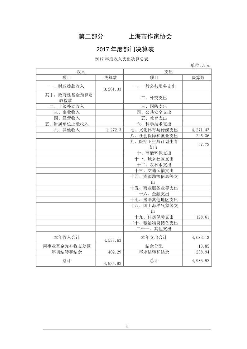 上海市作家協(xié)會(huì)2017年度部門(mén)決算(本級(jí))