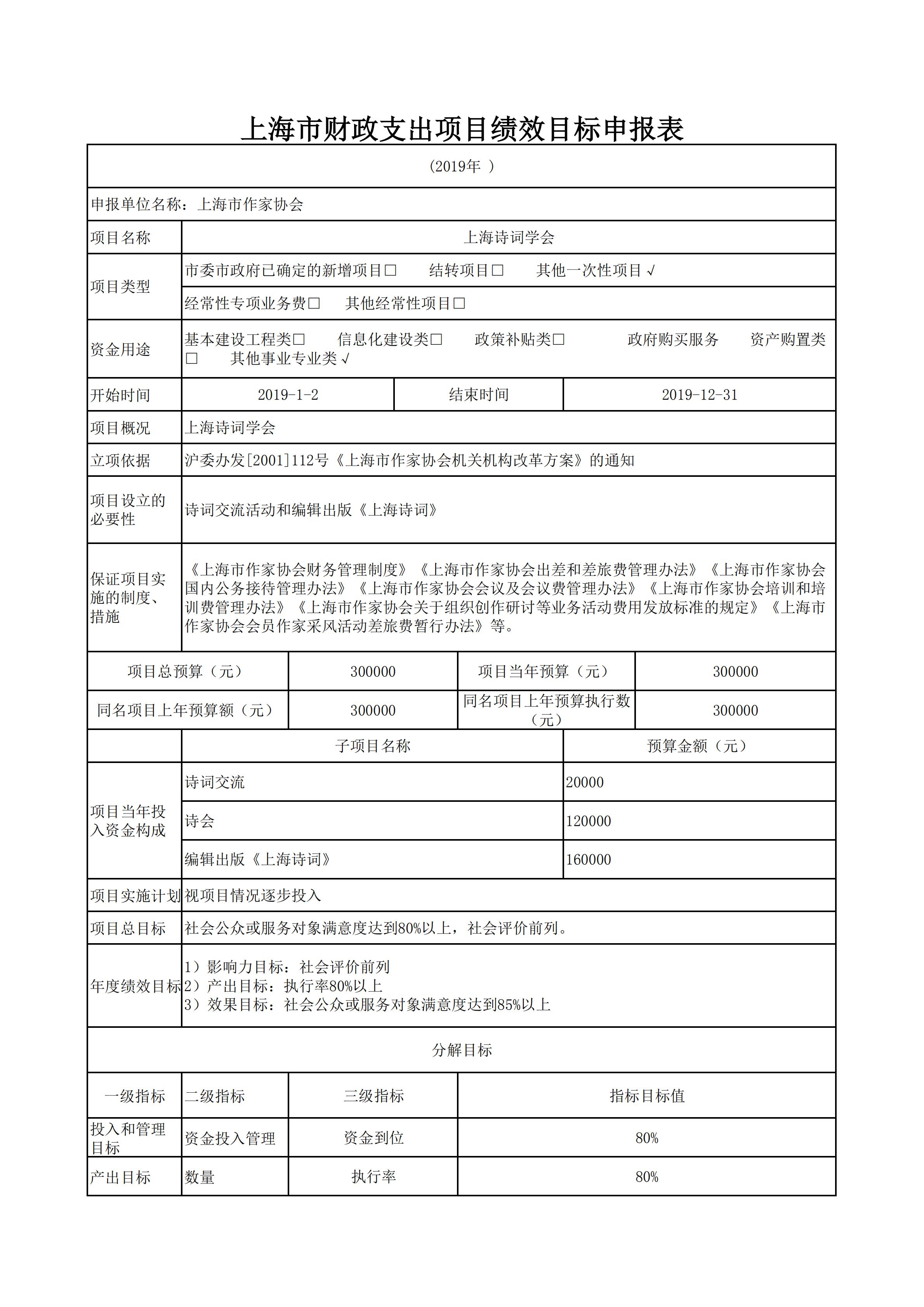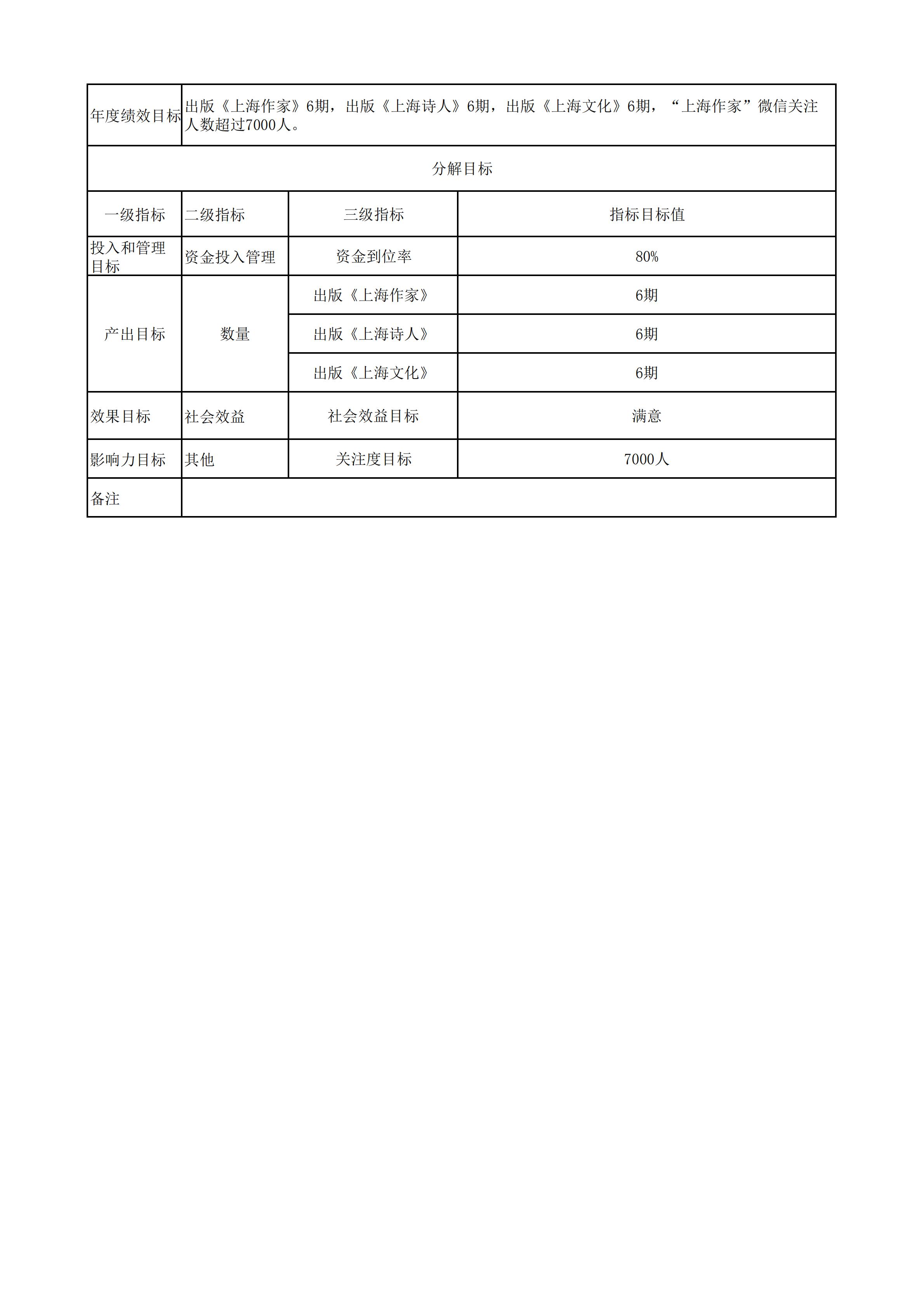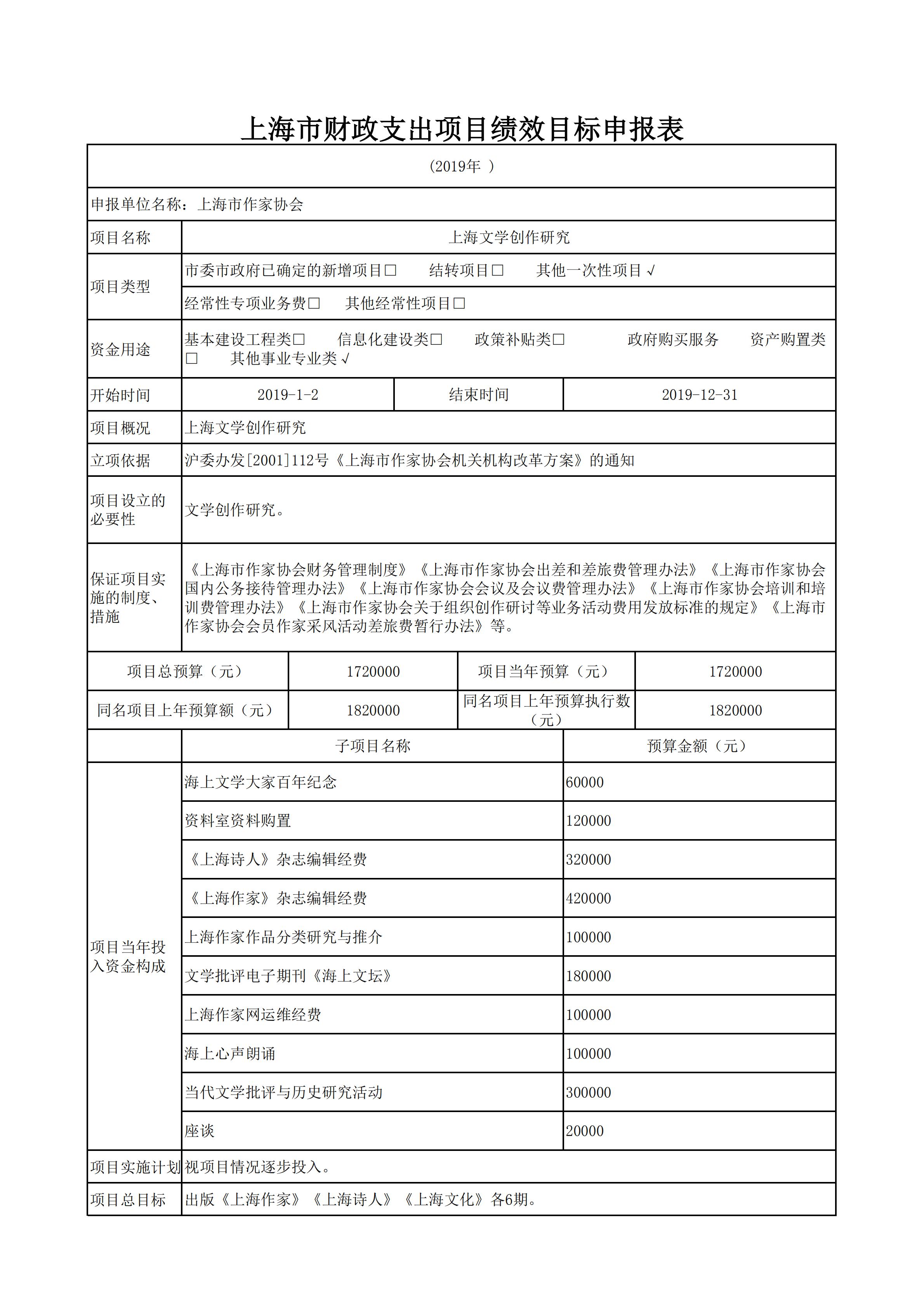 上海市作家協(xié)會2019年度財政支出項目績效目標