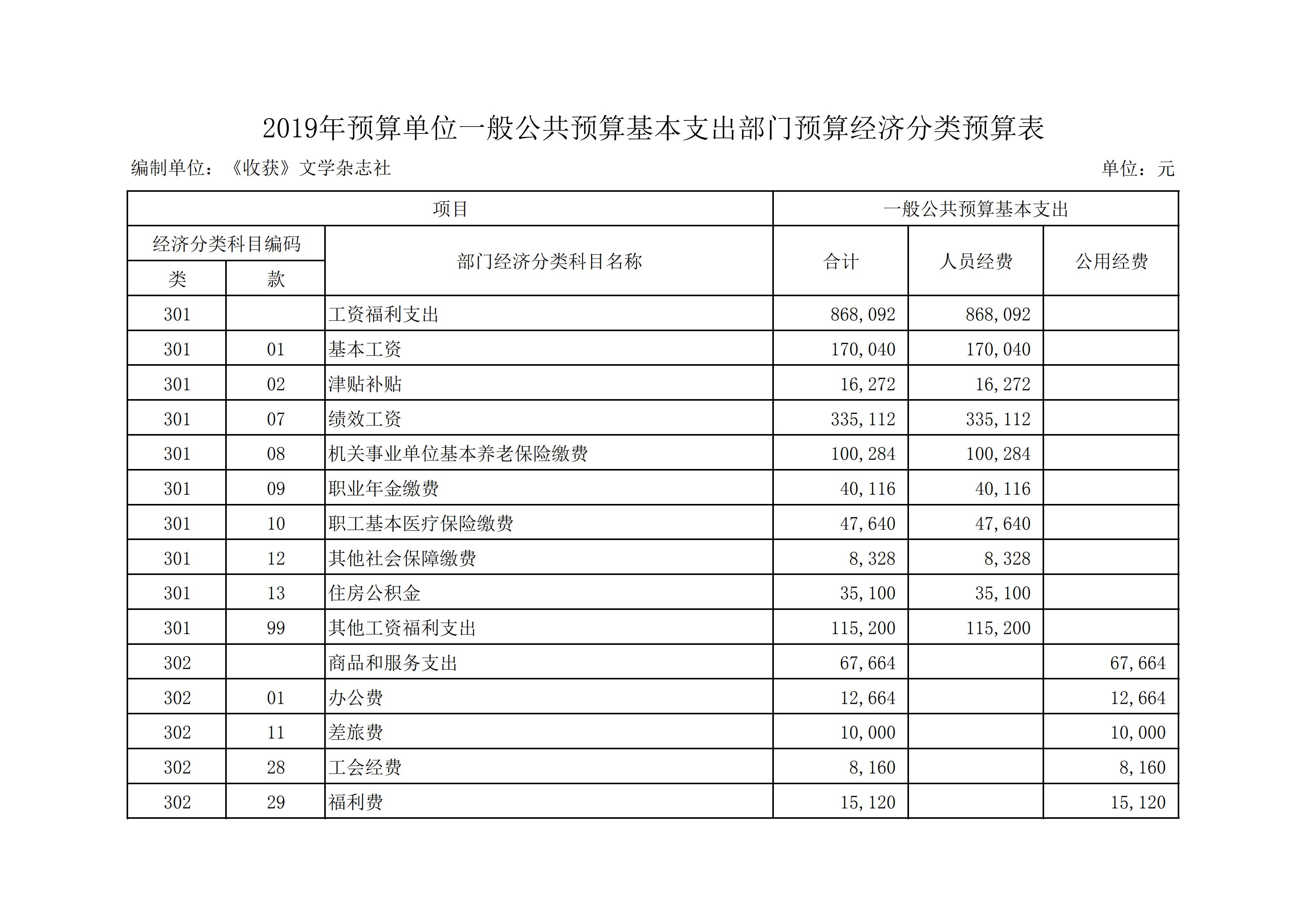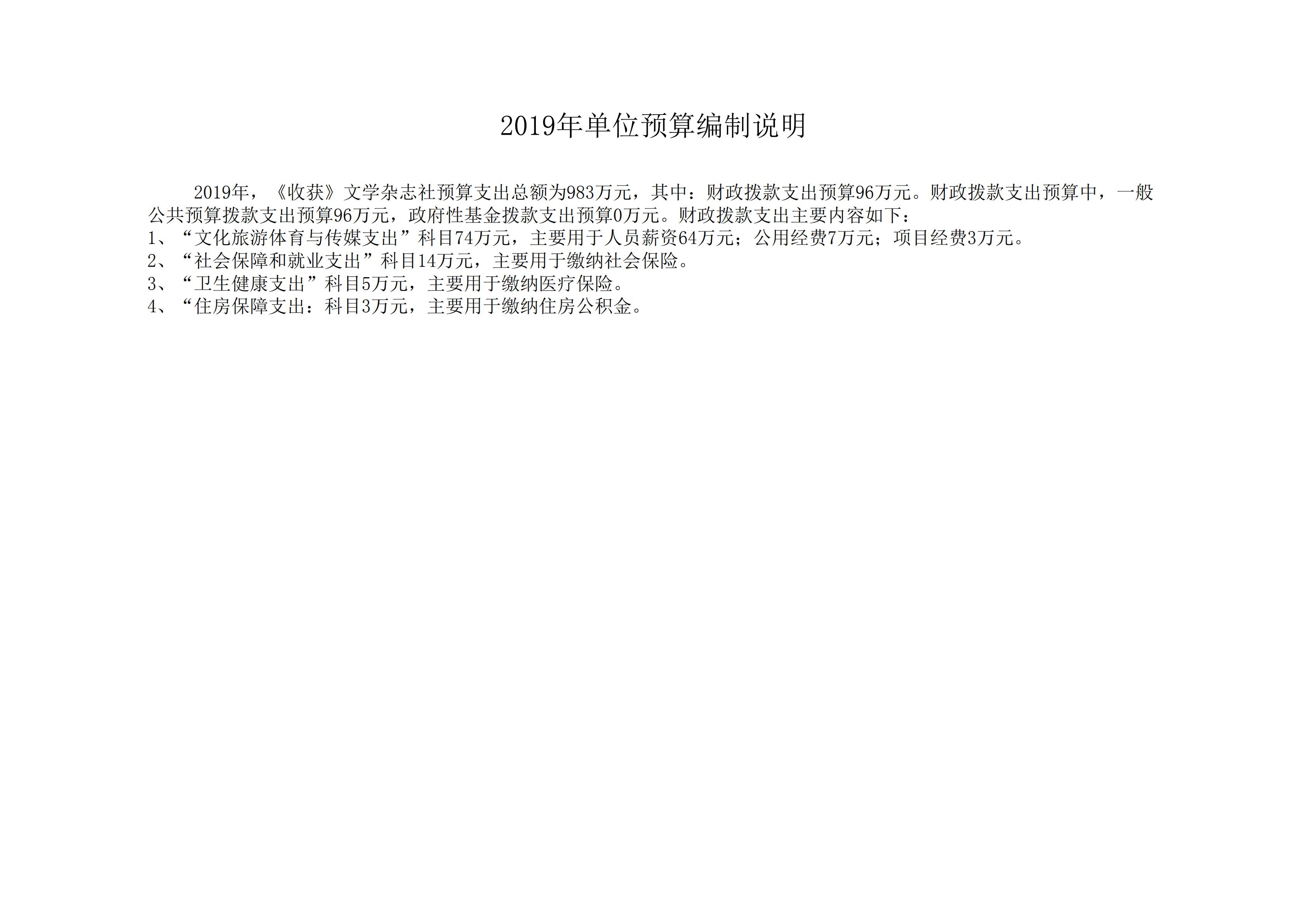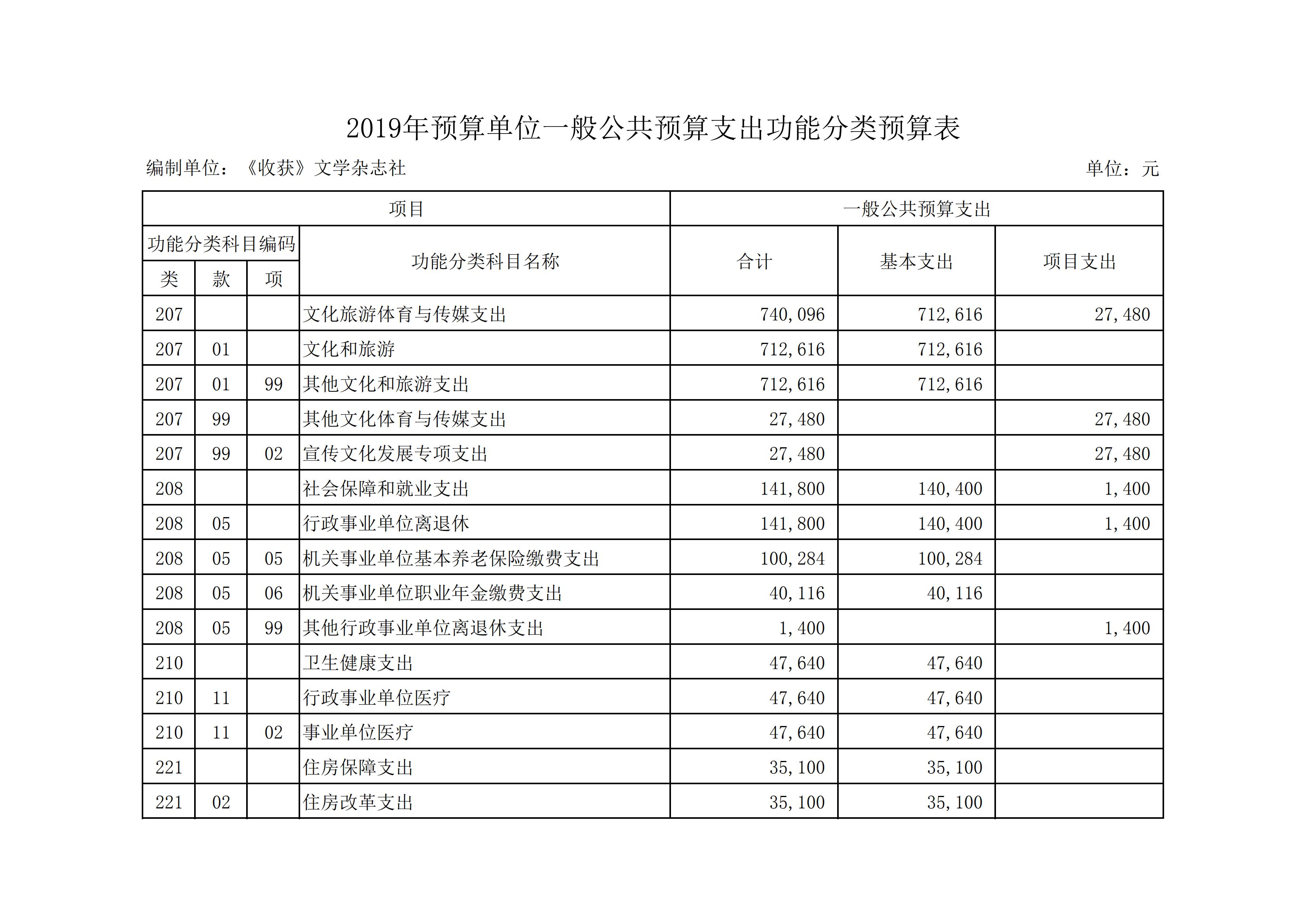 《收獲》文學(xué)雜志社2019年度預(yù)算