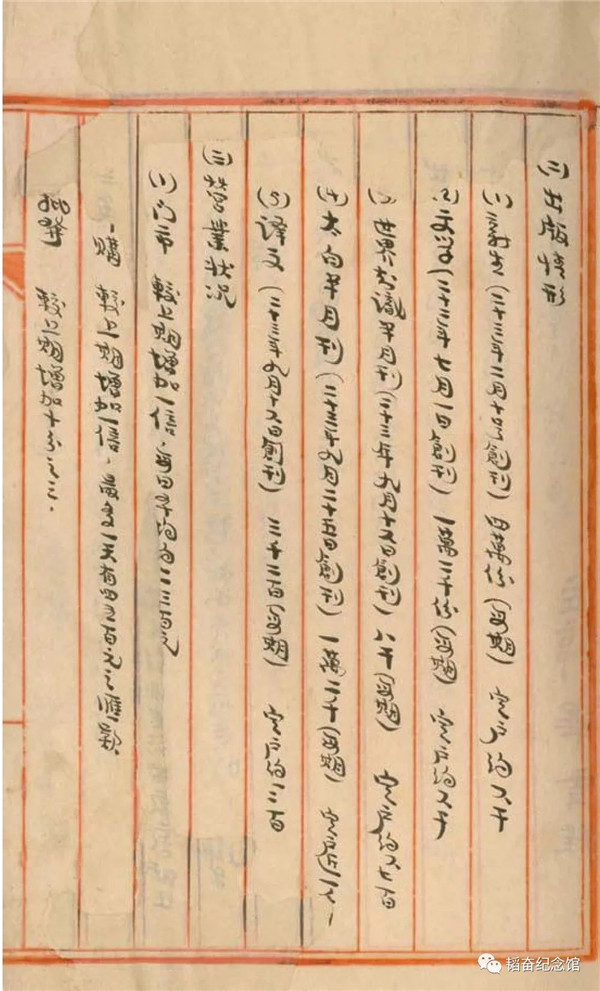 《生活書店會議記錄1933—1937》中關于當時生活書店旗下期刊出版情況的統計數據