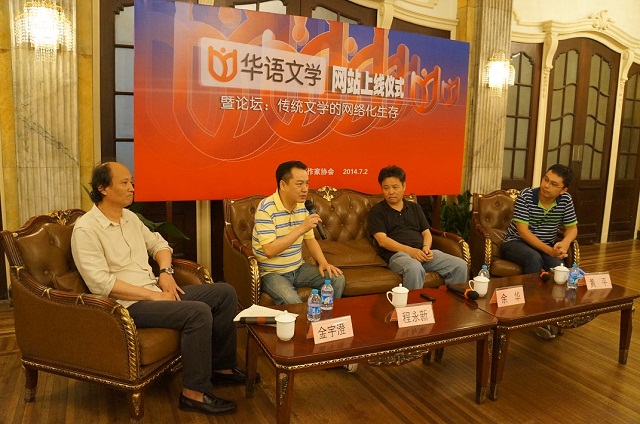 上線儀式之后,作協舉行了“傳統文學網絡化生存”主題論壇,論壇由《收獲》雜志執行主編程永新主持,作家余華、金宇澄、評論家黃平作了主題發言,并和與會者展開互動和探討。論壇結合金宇澄《繁花》由線上到線下的寫作出版歷程、余華《第七天》電子書與紙質書同步發行等經典案例的分析,探討了傳統作家和傳統文學作品如何順應互聯網時代的大趨勢,拓展文學生存、傳播空間等課題。會議氣氛熱烈,不少與會聽眾提出了自己對于論壇主題的獨特看法。