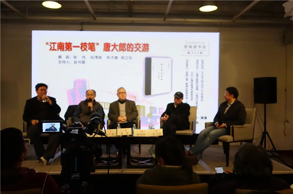 12月14日下午,上海圖書館研究館員張偉、祝淳翔攜編著《唐大郎紀念集》來到思南讀書會,與華東師范大學教授陳子善、巴金故居常務副館長周立民,走進“小報狀元”唐大郎的世界,分享他的趣聞軼事。上海韜奮紀念館副館長趙書雷擔任主持。《唐大郎紀念集》由新聞出版博物館與中華書局聯合出版,是唐大郎親友及研究者撰寫的紀念文章與唐大郎的詩文共同組成,這部作品是唐大郎著作首次在中國大陸出版。張偉提到,與一般作家不同,唐大郎的作品因發表于報刊,所以很少超過千字,且涉及面很廣。他談到,“唐大郎最主要的身份是記者,這就決定其專欄不能板起面孔說套話,說場面話,而是要寫新鮮活潑的東西,內容上要圍繞社會、圍繞上海的發展來寫。”同時,唐大郎的交友圈并不是集中在同一個陣營,而是三教九流。“他筆下有名有姓的朋友有上千位,文化史上留名的不下于一百。除新聞界以外,文學界的巴金、張愛玲、夏衍、柯靈等人都和他關系密切。”張偉指出,唐大郎的新聞帶有八卦性,但是這八卦并非不著邊際。所以,閱讀唐大郎的作品就像看有趣的人物故事談,不需要正襟危坐,適合在茶余酒后翻閱。祝淳翔圍繞“唐大郎的書畫緣”詳細介紹了他與書畫名家鄧散木、白蕉、唐云等人的交往。唐大郎曾請鄧散木刻印,鄧散木沒有馬上給他,他寫了一首打油詩催促,一段時間后完成了。1963年鄧散木去世,唐大郎在香港《大公報》上寫了一篇《老鐵雜憶》,全面回顧了兩人的交誼,文章不長,筆調詼諧。唐大郎與白蕉相識于1938年8月的杯水書畫展,他說看了白蕉的書法后“慚愧得要死”,以后“不該再雅”,因為白蕉比他水平高多了。同樣相識于此次書畫展的書法家唐云為唐大郎題寫墓碑,大書“詩人唐大郎云旌之墓”……祝淳翔談到,唐大郎最開始是一位詩人,剛開始向《大京報》投稿,后來逐漸跟很多報紙刊物合作,最多的時候同時為7家報紙寫稿。他上午睡覺,晚上開始到處聽戲,去舞場。好友李君維詳細記敘了唐大郎花花綠綠的都市生活——舞廳、酒樓、書場,可謂“霓虹燈下的釵光鬢影,紅氍毹下的悲喜人生”。陳子善介紹,唐大郎筆耕多年,留下近五百萬文字,生前沒有機會出版過一本書。小報曾經一度被認為是小市民的讀物,但實際上它是上海市民生活的生動體現,“上海從十里洋場到現代化大都市,人們的喜怒哀樂總要有人記錄,否則這段歷史就是混沌一片。”唐大郎忠實于手中的筆,準確把握社會生活的細微與肌理,能讓讀者在知曉文學、藝術史上的內容外,真正了解到當時人們的日常。回顧上海小報的歷史,如果沒有唐大郎,會大為失色。從尊重歷史的角度、研究小報新聞的角度等方面出發,都無法避開他。周立民談到,唐大郎的作品包含很多美好的個人生活,為人們提供了看待歷史的另一個視角。同時,小報也是海派文化中不可缺少的部分,收集整理唐大郎的文字是近年來海派文化相當重要的成果之一。《唐大郎紀念集》將作家介紹與作品選錄兩部分結合起來,能夠真正讓讀者全方位地了解唐大郎。陳子善認為,唐大郎對自己關心的事情始終興致勃勃,“他關心這些演員、藝術家,始終對大家充滿熱情,有時候寫得過分,但是很可愛。”同時,唐大郎有一雙能夠欣賞美的眼睛。在書畫方面,他對畫家、書法家、篆刻家的認知非常到位,能敏銳地發掘他們的潛力。在文學界,他與張愛玲、蘇青、夏衍、曹禺、巴金等人均有接觸。張愛玲非常欣賞唐大郎的詩歌,主動建議他出詩集,可惜最終未能出版。唐大郎在張愛玲遇到困難時伸出援手,1949年后,張愛玲在《亦報》上連續刊登的兩部小說《十八春》、《小艾》,都是由唐大郎經手。在周立民看來,唐大郎對潦倒時期的張愛玲、周作人的幫助體現出他做人的原則。同時,與當時普通的新聞報道不一樣,唐大郎總是用文學家的筆調寫出屬于他自己風格的文章。