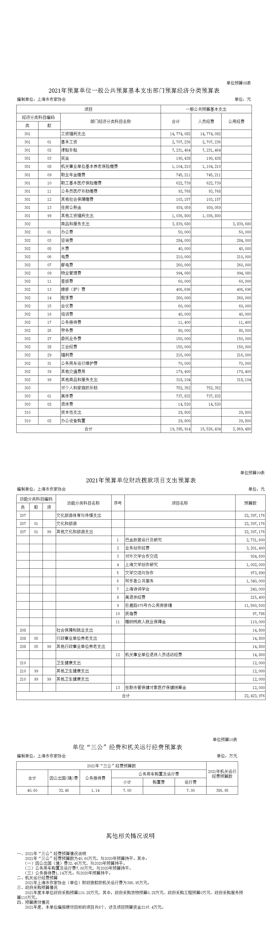 上海市作家協會2021年度部門預算