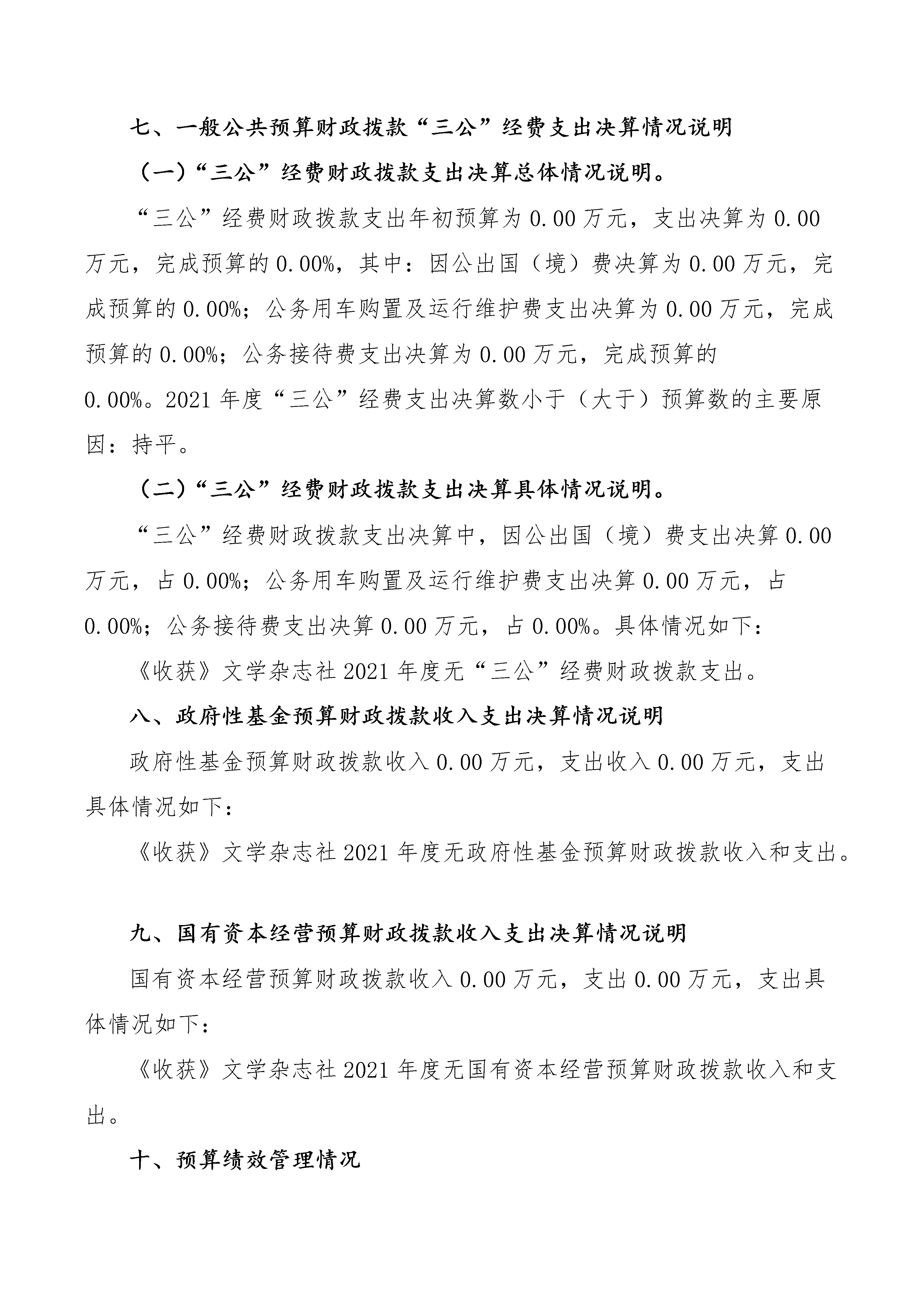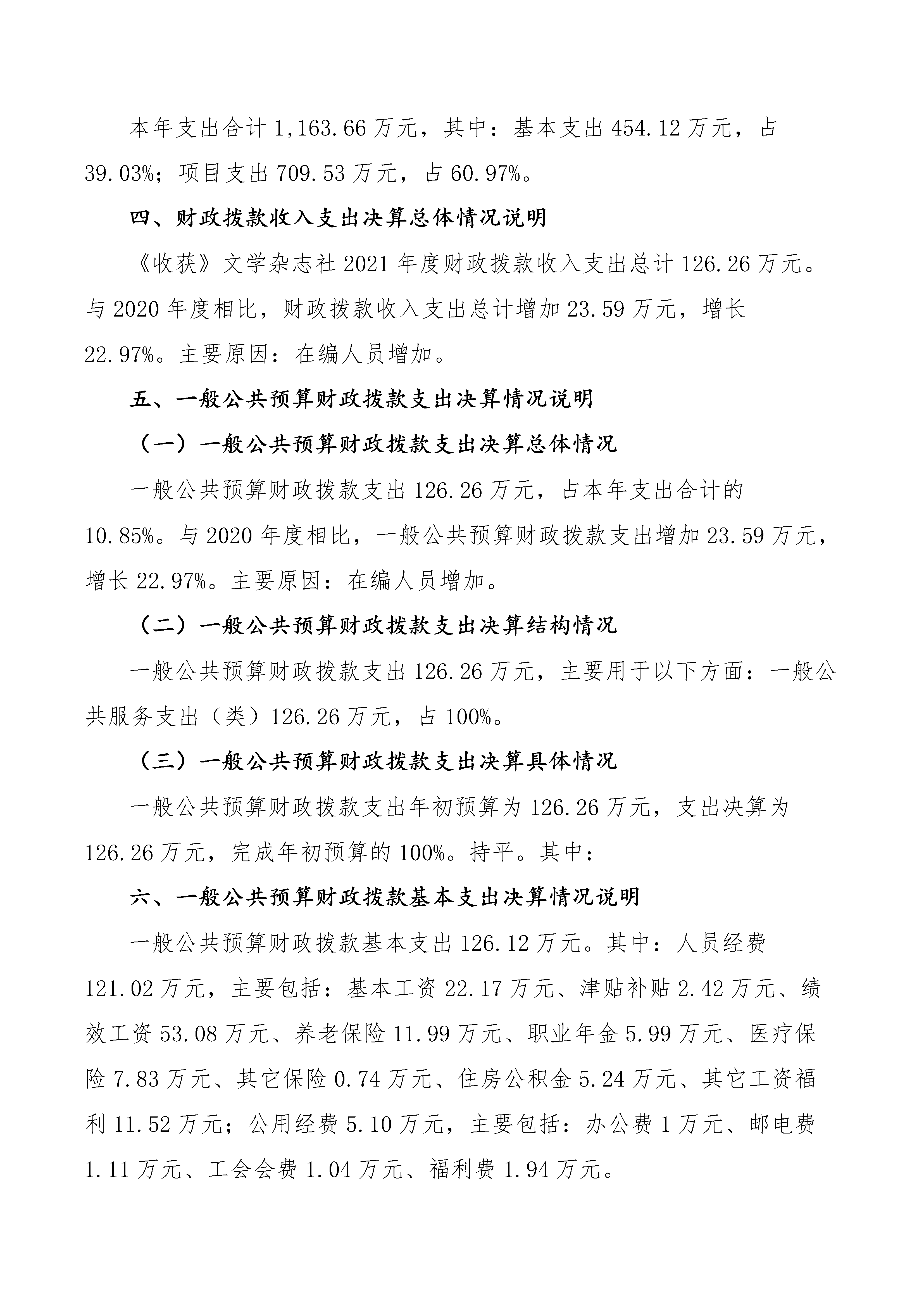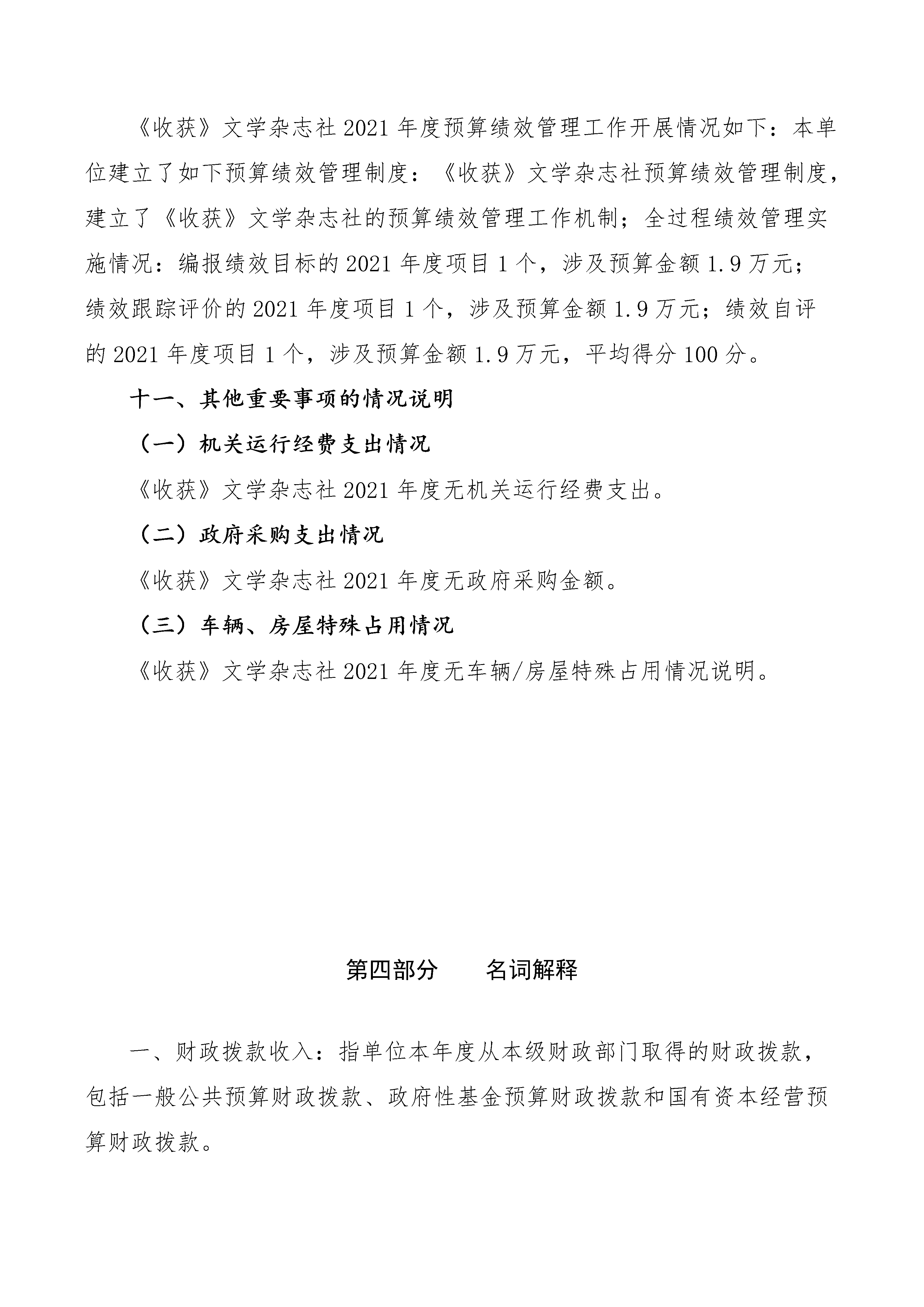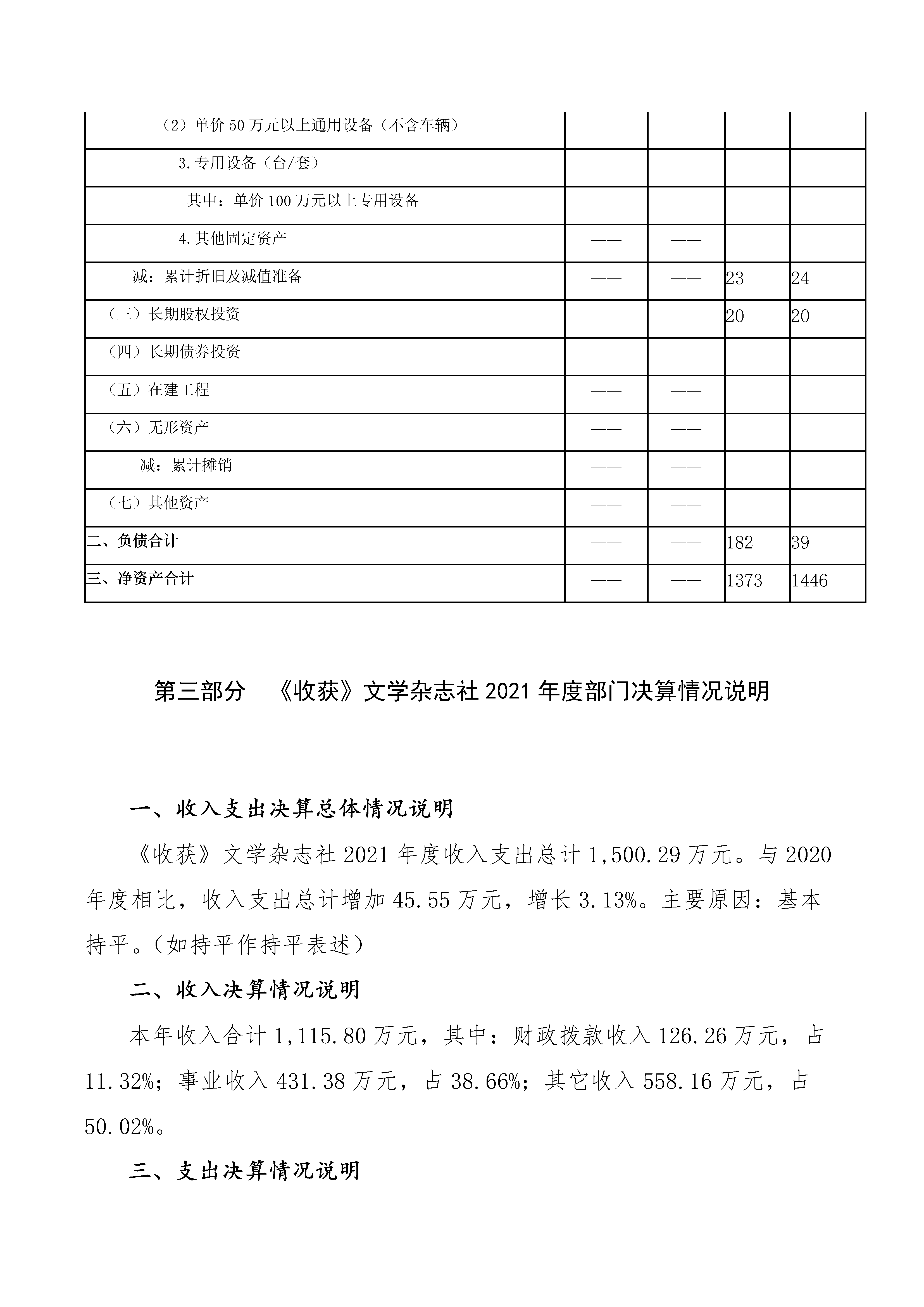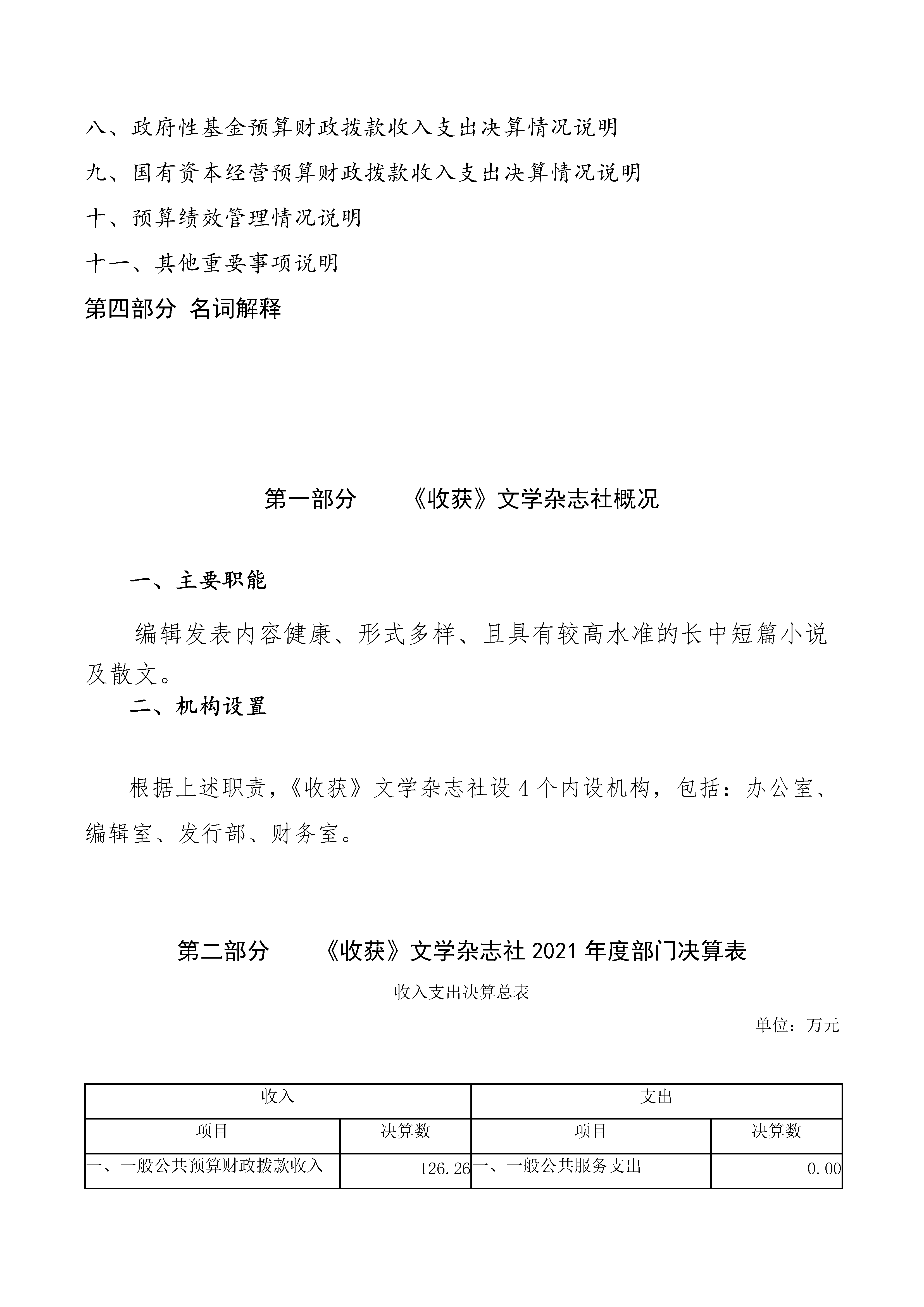 《收獲》文學雜志社2021年度決算