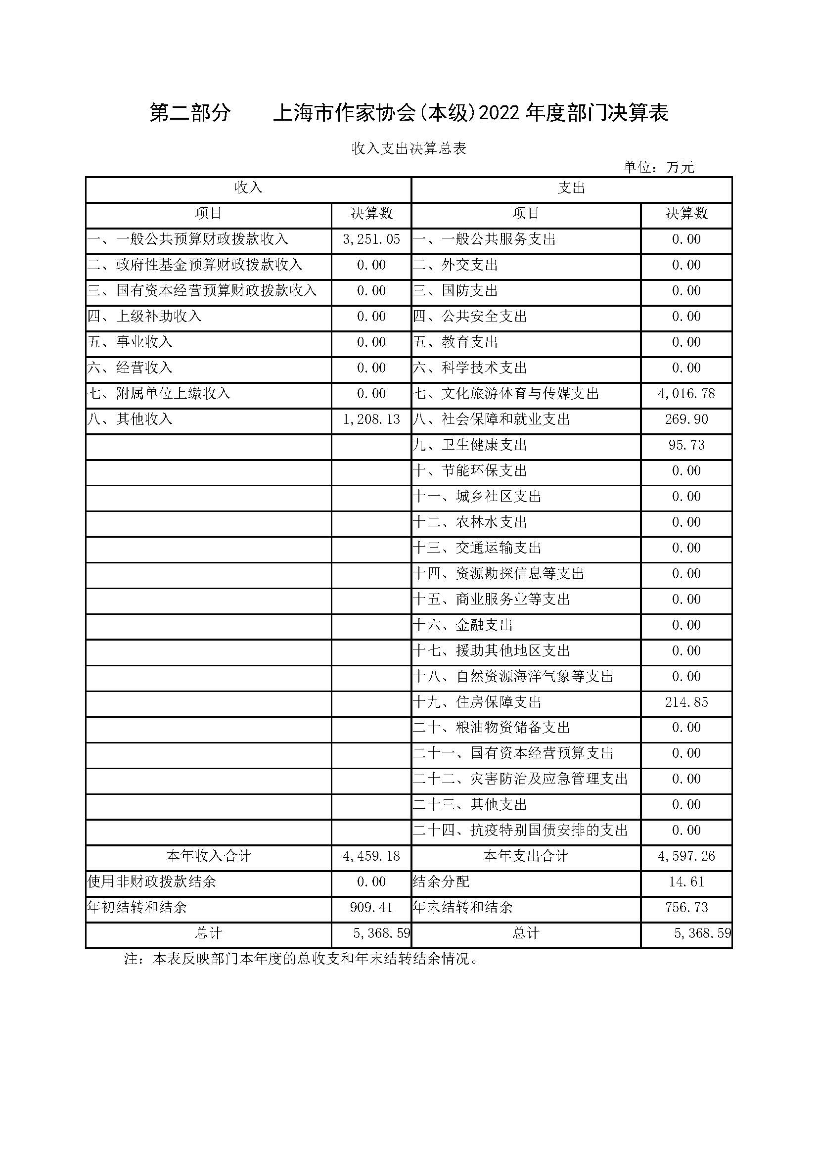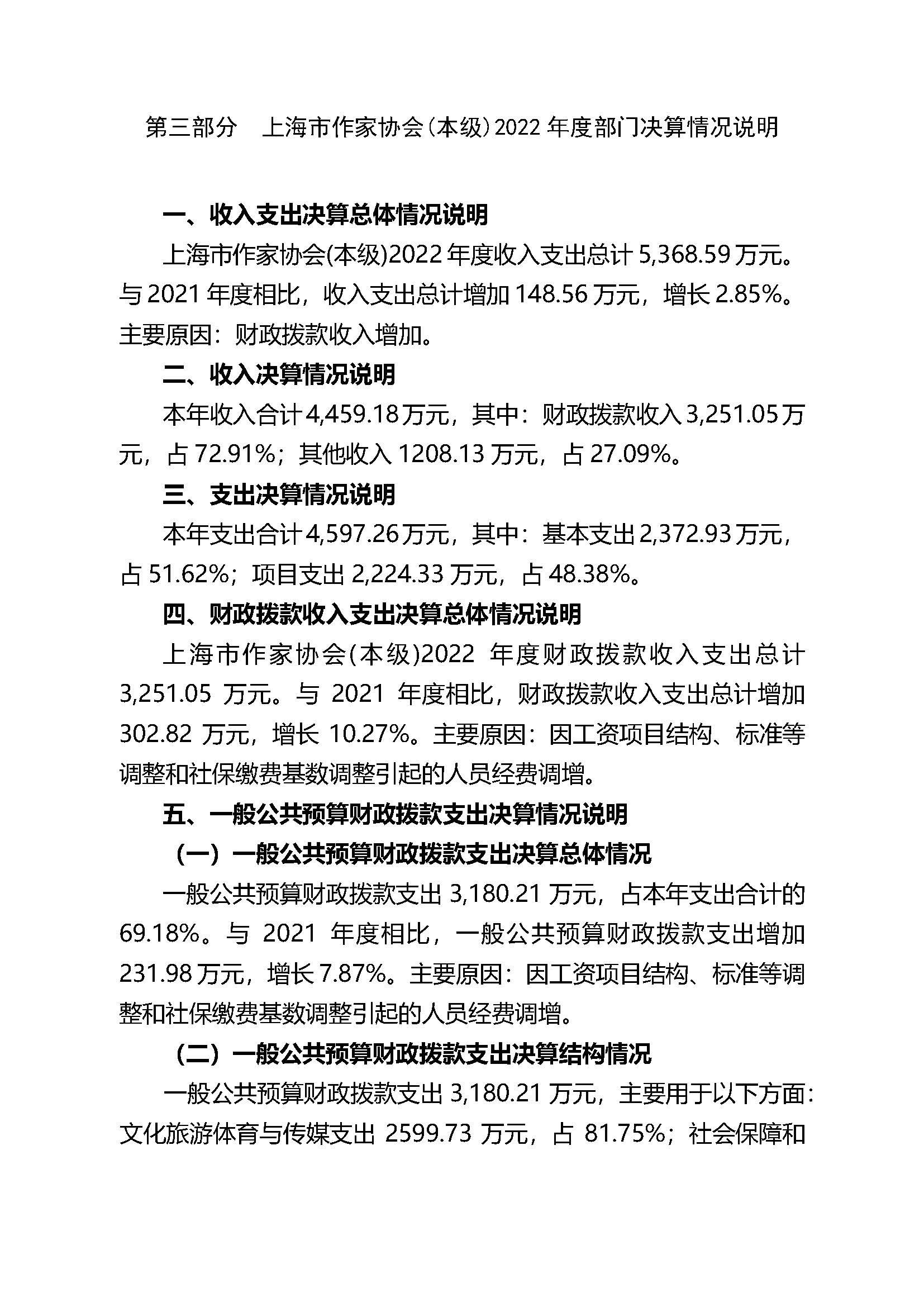 上海市作家協(xié)會(huì)(本級(jí))2022年度決算