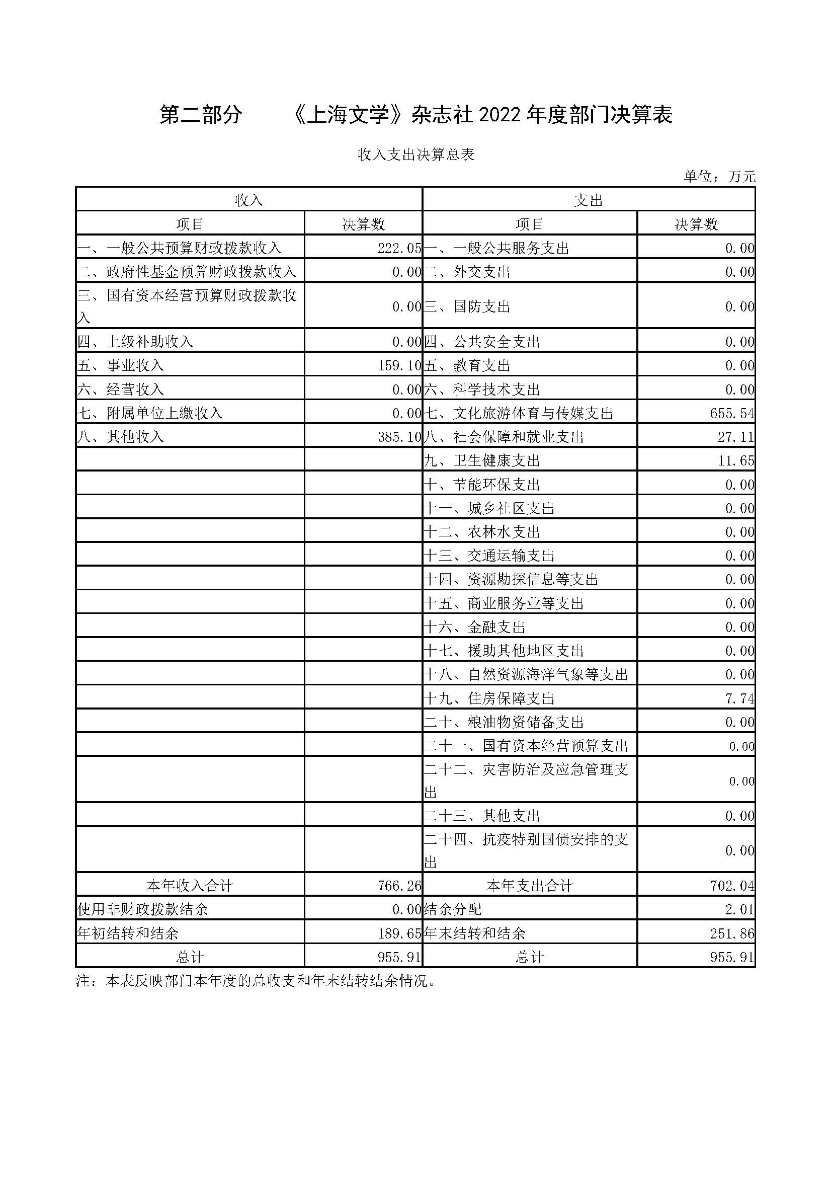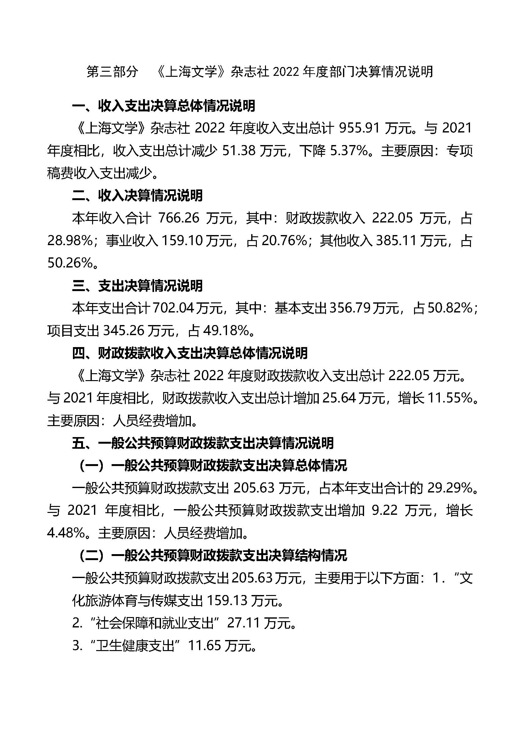 《上海文學》雜志社2022年度決算報告