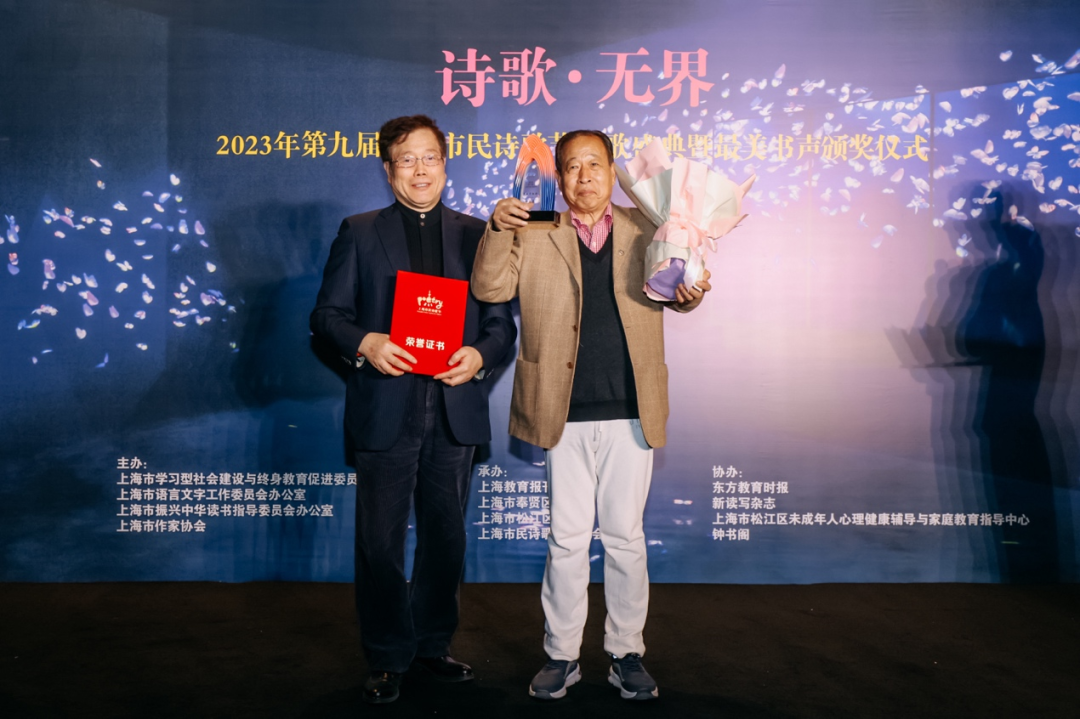 11月20日,2023年第九屆上海市民詩歌節詩歌盛典“詩歌·無界”在如夢如幻的無界美術館舉行。著名詩人田永昌榮獲“杰出貢獻獎”,復旦大學車信昱、上海交通大學周慶貴等10位學生獲得“大學校園詩歌之星”稱號。眾多詩歌愛好者在詩歌盛典美輪美奐的視聽盛宴里度過了一個詩意飛揚的夜晚。