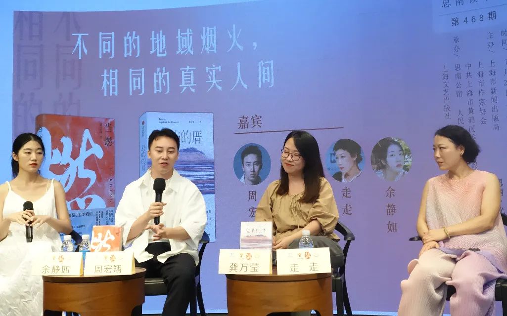青年作家周宏翔、龔萬瑩與作家走走做客活動下半場,主題“不同的地域煙火,相同的真實人間”,余靜如主持;探討地域性元素在小說中的位置。