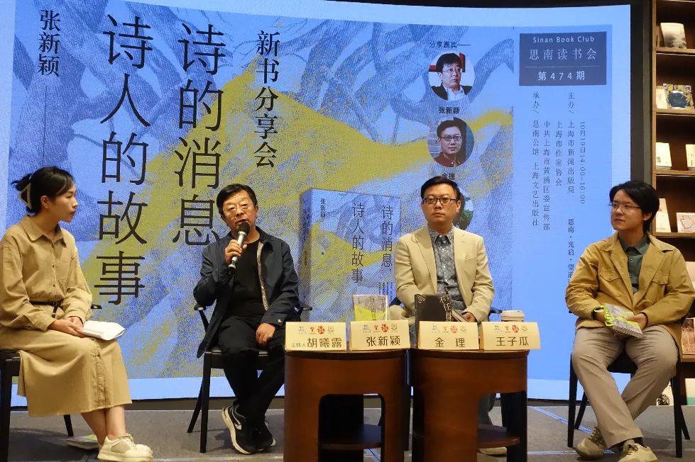 10月19日下午,復旦大學中文系教授張新穎攜其新書《詩的消息,詩人的故事》與復旦大學中文系教授金理、青年詩人王子瓜一同做客思南讀書會第474期,帶領讀者重釋經典之美。編輯胡曦露擔任主持。