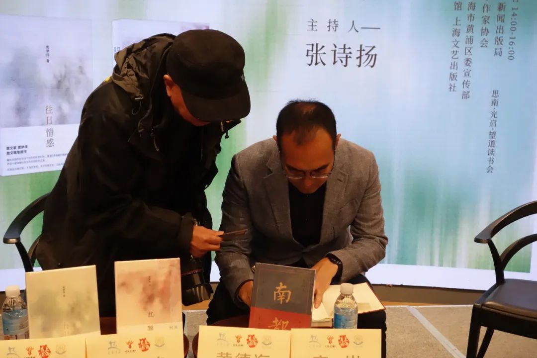 活動最后,張詩揚總結:“文學不是奢侈品,而是照亮人心的火種。”在簽售長隊中,讀者們手持新書,與作者暢談。
