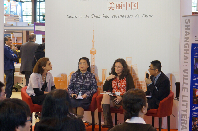 2014年3月22日,王安憶、陳丹燕、秦文君在巴黎圖書沙龍上分別推介上海寫作計劃、上海國際文學周、上海國際童書展。