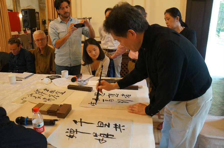 令駐市作家意想不到的驚喜是,趙麗宏現場揮墨,為每一位駐市作家提寫了一幅字,愿書法之韻能讓外國作家對中國文化有所感悟。