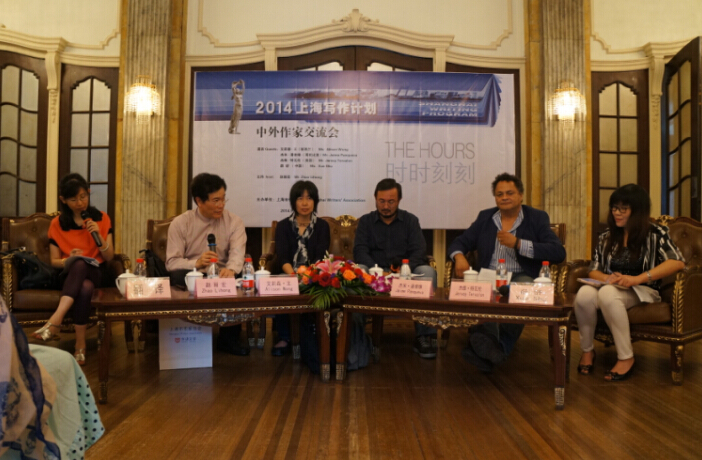 9月20日下午,由上海市作協(xié)副主席趙麗宏主持的2014上海寫(xiě)作計(jì)劃第二場(chǎng)中外作家交流會(huì)在作協(xié)大廳舉行。嘉賓為新西蘭小說(shuō)家、詩(shī)人艾莉森·王、哥倫比亞、墨西哥作家杰米·潘奎文、美國(guó)小說(shuō)家杰維·特瓦倫,以及上海作家薛舒。