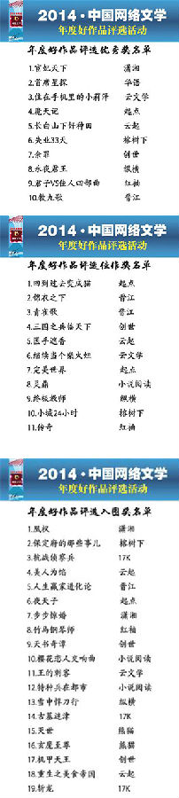 “2014中國網(wǎng)絡(luò)文學(xué)年度好作品評選”獲獎名單
