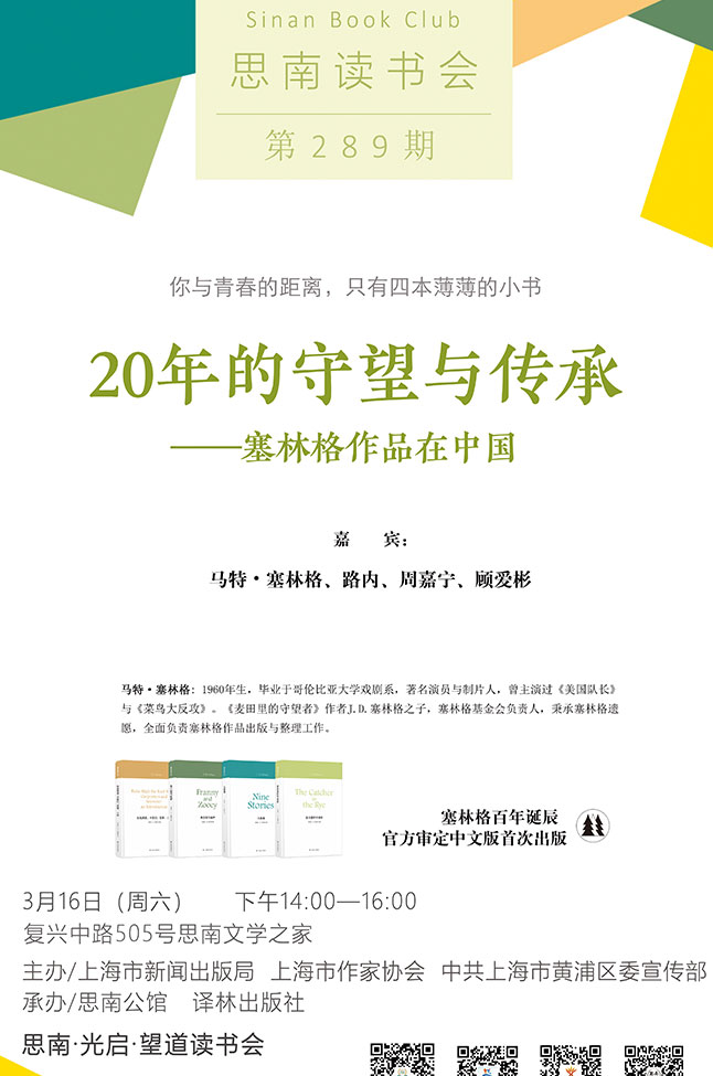 嘉賓:馬特·塞林格、路內、周嘉寧、顧愛彬