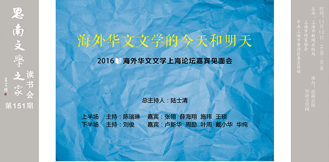 今天讀書會的嘉賓,是來滬參加2016海外華文文學上海論壇的海外作家。這個論壇是上海作家協(xié)會及其主管主辦的華語文學網(wǎng)和復旦大學華文文學研究中心共同創(chuàng)設的平臺。海外華文文學有一百多年的歷史,到今天海外華文文學已經(jīng)發(fā)展成為一個世界性的現(xiàn)象。在宋代流傳著一句話:有井水的地方就有柳永的詞;今天我們可以說,有海水的地方就有華人,有華人的地方就有華文文化,就有華文文學。數(shù)以千計的海外華文文學作家,用漢語在海外寫作,既寫中國故事,也寫國外的生活,用我們民族的文化和所在國家的文化對話,既弘揚了中華民族文化,又促進了不同文化間的交流,他們的作品豐富了中華文化的寶庫,也豐富了世界文化的寶庫。借著這個平臺,邀請他們來參加論壇,在論壇中作家與批評家直接對話,通過對話直接交流,增進了解,增強友誼,同時促進創(chuàng)作品質(zhì)的提升。今天中華民族已經(jīng)逐漸從世界的邊緣走向世界舞臺的中心,在這樣的背景下,世界華文文學的明天將會更加燦爛,這也是我們共同的希望…… 【詳情】