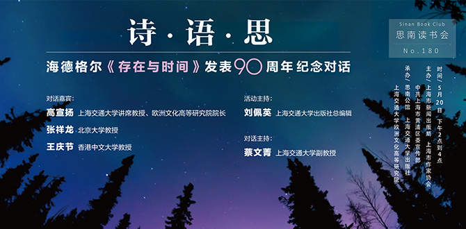今年是德國哲學家馬丁·海德格爾的散文體巨著《存在與時間》出版九十周年紀念。該書一經出版,便在西方世界引發熱烈反響,中國學者和讀者也就此展開了很多討論。思南讀書會第180期活動現場,主持人蔡文菁,與高宣揚、張祥龍、王慶節等幾位教授,共同探討《存在與時間》中有關生命的意義、中西方文化的互補以及對當代問題的思考。