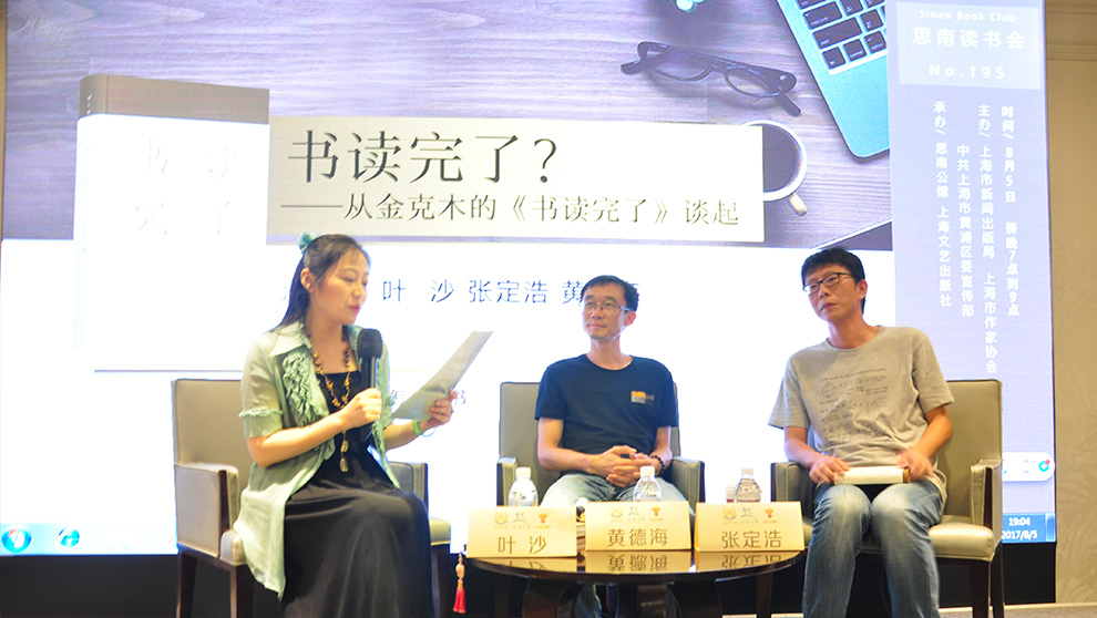8月5日,《子夜書社》的主持人葉沙,《書讀完了》的編者、《思南文學選刊》副主編黃德海,《上海文化》雜志副主編張定浩共同做客第195期思南讀書會。三位嘉賓帶著對金克木老先生的敬意,對其作《書讀完了》進行滲透式解析,與現場讀者們一同分享文化大家金克木其人、其事及讀書的方法。
