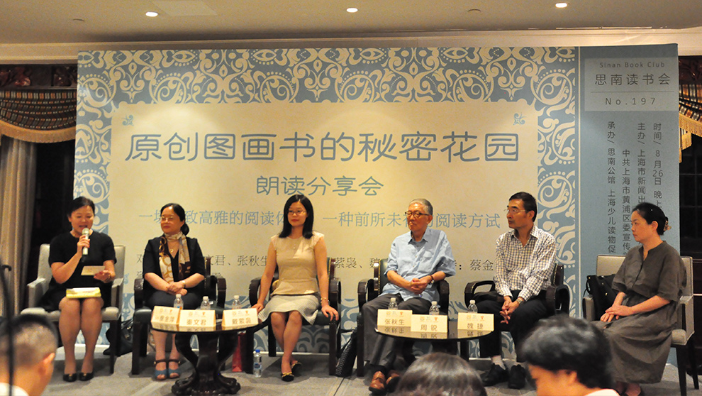 8月26日晚上第197期思南讀書會(huì)聚焦兒童原創(chuàng)圖畫書,舉辦了一場“原創(chuàng)圖書的秘密花園” 朗讀分享會(huì),活動(dòng)不僅邀請(qǐng)到著名的兒童文學(xué)作家秦文君、張秋生、周銳、魏捷、戴縈裊講述他們圖書的創(chuàng)作過程及有趣經(jīng)歷,也有教育界的老師獻(xiàn)上聲情并茂的朗誦,活動(dòng)由著名表演藝術(shù)家蔡金萍主持。