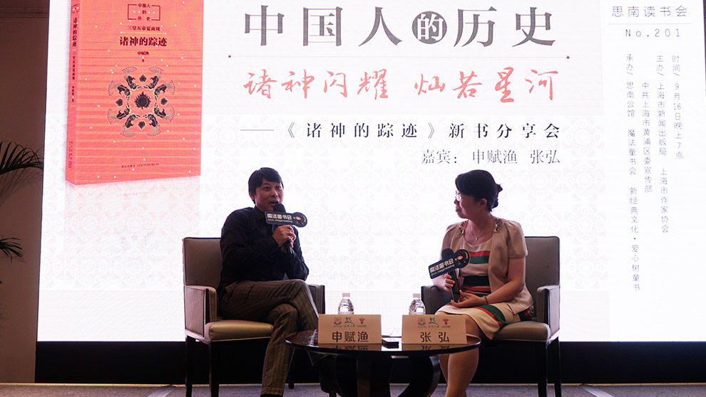 張弘介紹到申賦漁有著獨特的生活背景:曾因記者的工作需要,長期旅居巴黎。對此,她有所疑問,眼前是現代西方之景的申賦漁,為何會投身于中國古代文化的書寫。申賦漁回憶當年因為工作的原因接觸到許多華人,并與他們有進一步的交流。在溝通中,他發(fā)現華人們普遍有著迫切尋根的焦慮。因為他們的孩子大多出生在國外,從小精通外語也掌握漢語,但唯獨對中國文化的了解嚴重匱乏。這些華人極其渴望孩子們能有健全的知識儲備,同時也希望能彌補自身的文化缺失。