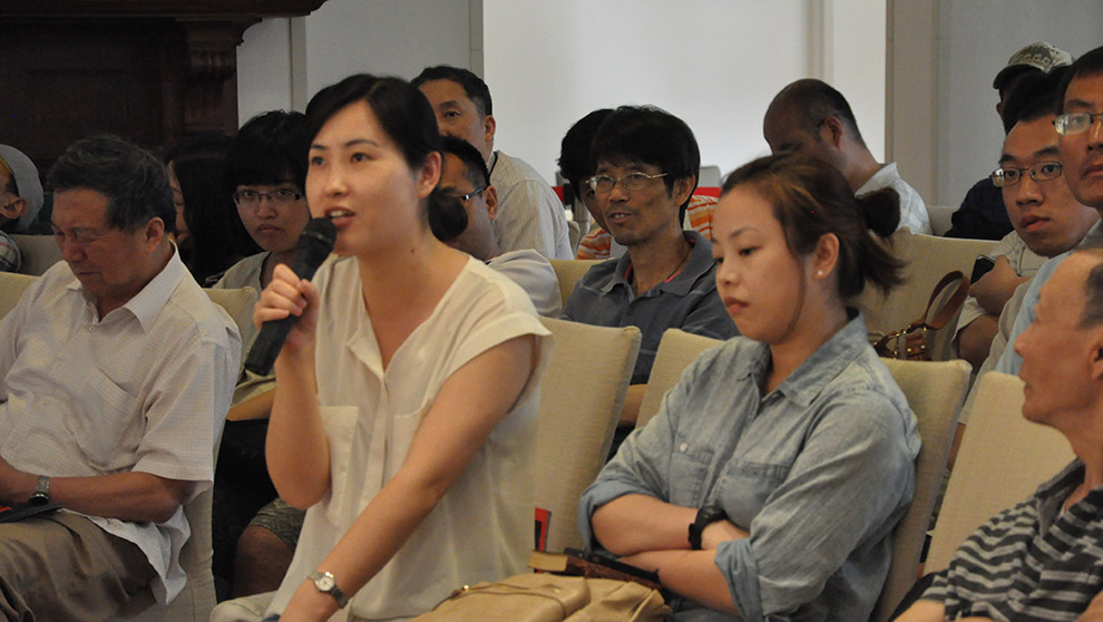 活動現(xiàn)場,熱心讀者向兩位老師提問。