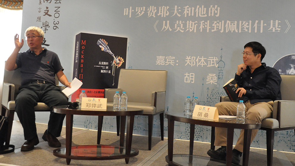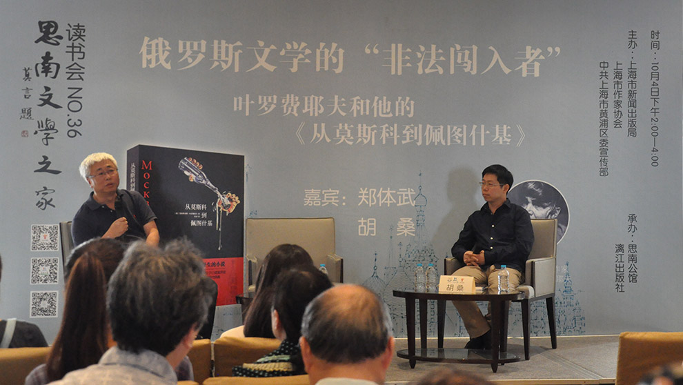 上海外國語大學的俄羅斯文學專家鄭體武,詩人、新銳批評家胡桑,應邀與大家分享了這位俄羅斯文學的“非法闖入者”,跟隨主人公踏上從莫斯科到佩圖什基的列車,展開一場俄羅斯的“異樣的文學”之旅。