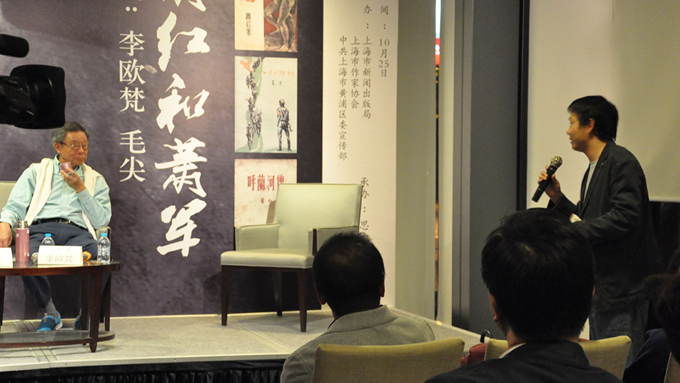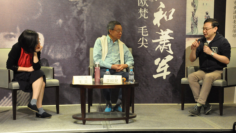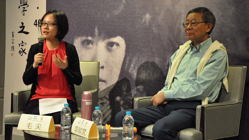 在影片上映近1個月、爭論漸消之后,香港作家、學者李歐梵與華東師范大學中文系副教授、曾友情出演《黃金時代》(這部分鏡頭在正式上映時被剪)的毛尖,10月25日晚在思南文學之家進行了一場題為“蕭紅和蕭軍”的對談。因為兩位主講者的專業身份,這場對談,被認為是“正解”。
