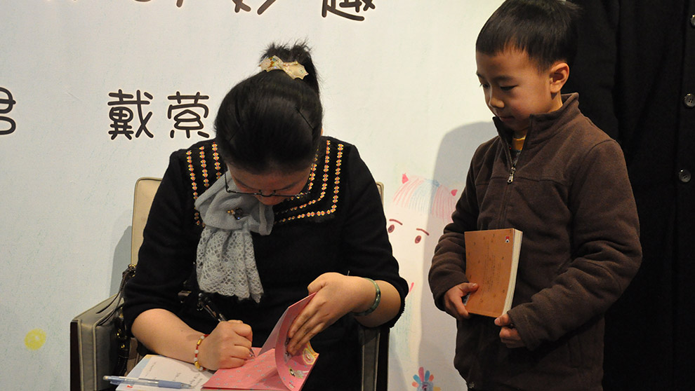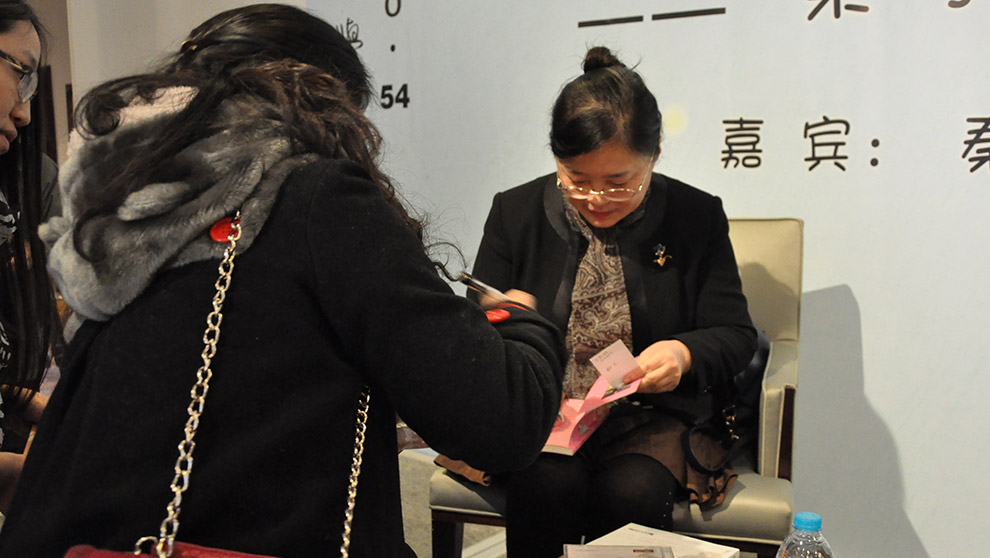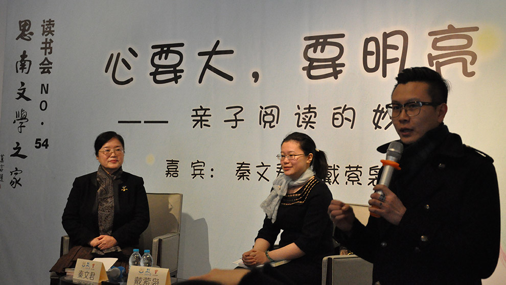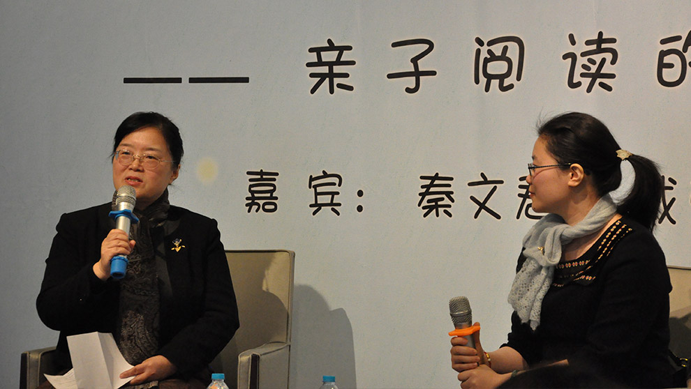 秦文君從女兒戴縈裊自小愛好閱讀談起,與戴縈裊一起與大家分享了她們各自童年時的閱讀體驗。秦文君追憶了自己的父親與閱讀相關的片段:“我的父親很有想法,比如一個孩子的成長,他覺得很多東西是很重要的,首先在我很小的時候他教我練字,他說字是人的第二張臉,你出去,人張紙再象樣,一寫字馬上露餡了。第二,你要好好的讀書,多讀一些書,心里才有東西,心才會明亮。他叫我讀的書,他是很自由,你要什么書就給你買什么書。我最小的時候喜歡公主的書,讀了很多,甚至出了問題。那時候我家住在一樓,住在二樓有一個鄰居,也是女孩子,也喜歡讀公主的書。
