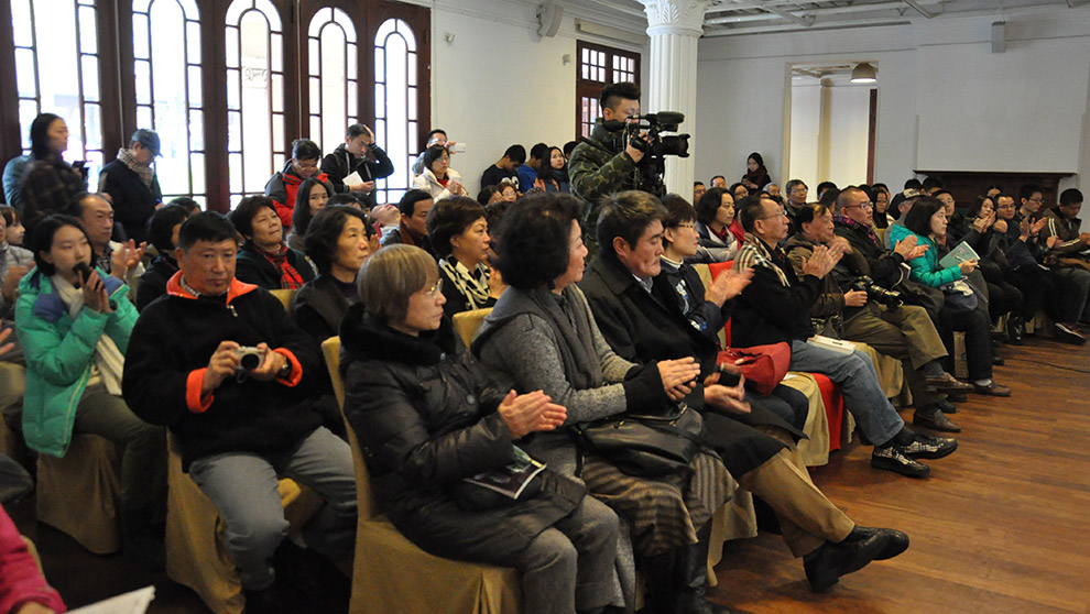讀書會開始,程乃珊的丈夫嚴(yán)爾純介紹了出版本書的緣起。這本書收錄了程乃珊從2011年12月到2013年4月的文稿,這段時(shí)間是乃珊生命的最后時(shí)光,她身患重病,經(jīng)過了11次化療,但是依然非常堅(jiān)強(qiáng)。嚴(yán)爾純表示,在這些遺稿中,完全看不出乃珊所受的病痛折磨,而充滿了對生活的熱愛之心。此外,嚴(yán)爾純向讀者介紹了本書的封面畫與書名。畫中的綠房子是他們家族原來的房子,在銅仁路333號,而房子旁邊穿紫旗袍的身影便是乃珊。書的名字原來是《白云無牽掛》,后來一次機(jī)緣巧合中作家余華心提出了”遠(yuǎn)去的聲音“,受到了大家一致贊同,于是書名最終被確定下來。